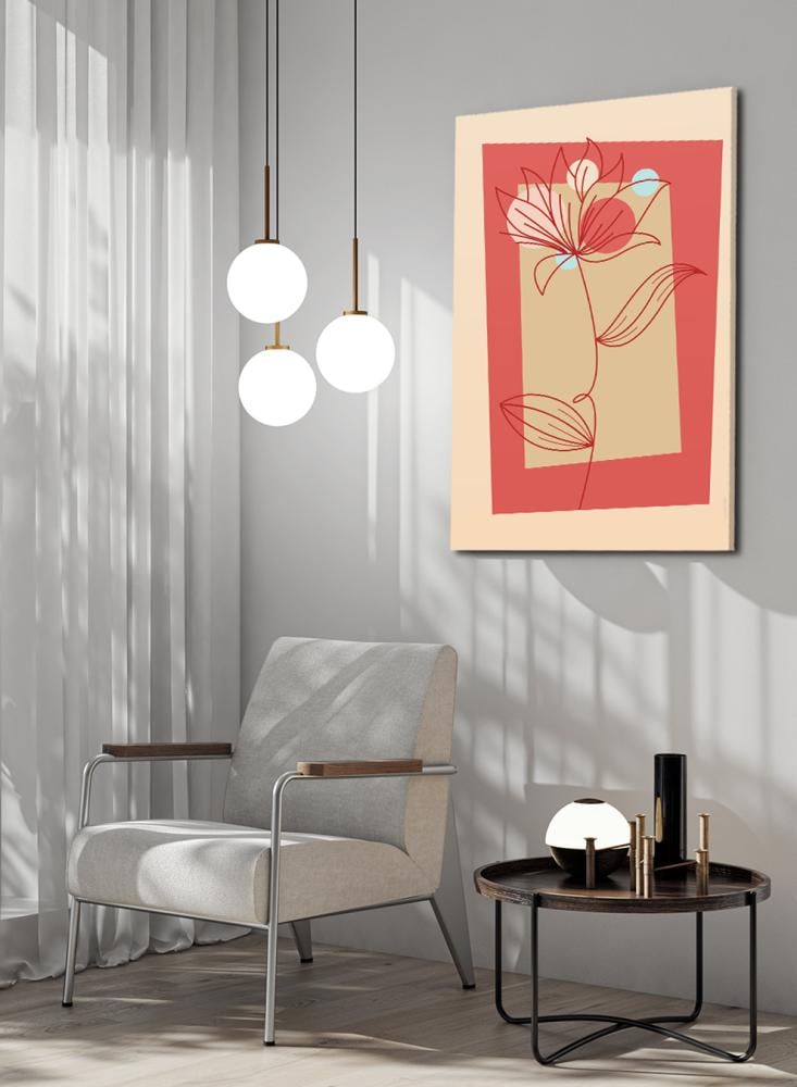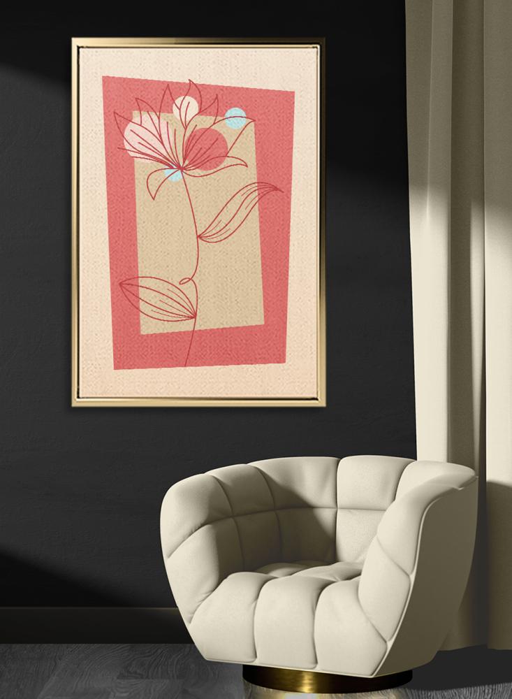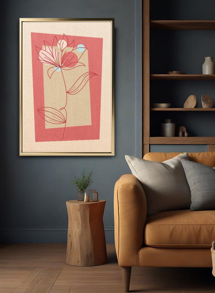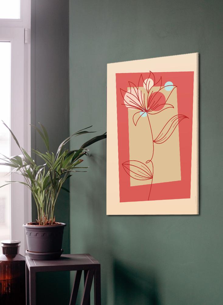 لوحة كانفاس على إطار خشبي بتصميم زهرة ستايل بوهيمى