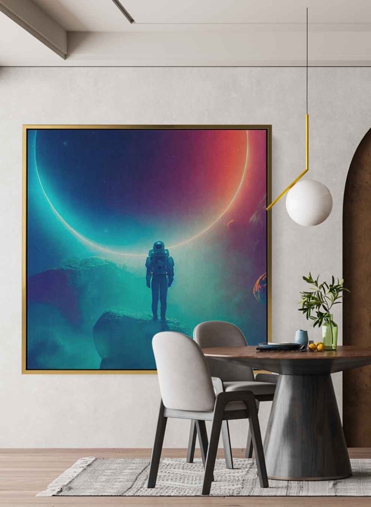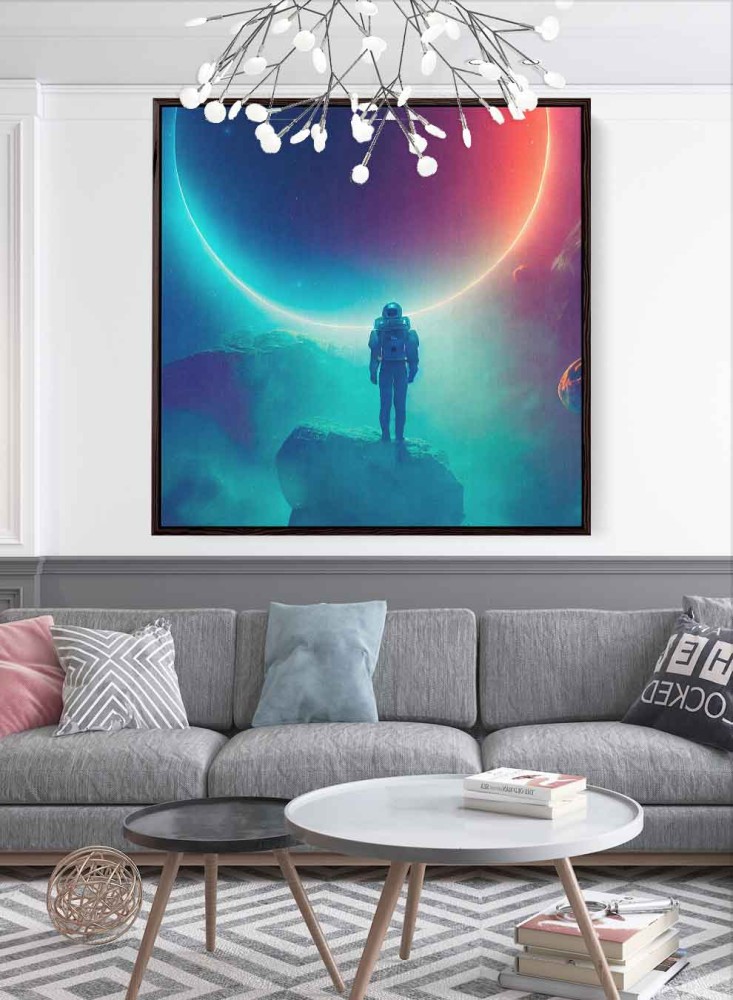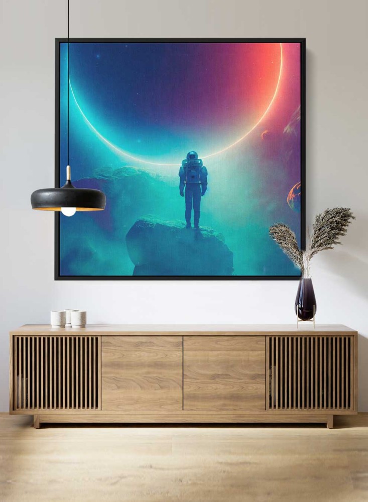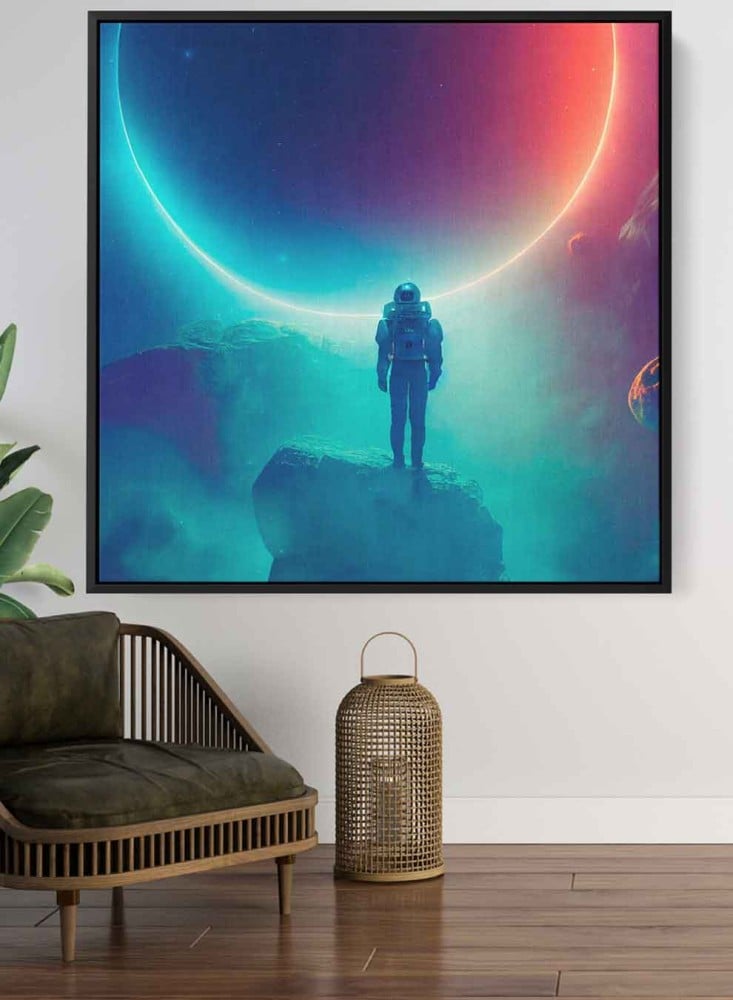 لوحة كانفاس على إطار خشبي بتصميم رائد فضاء يشاهد كسوف القمر
