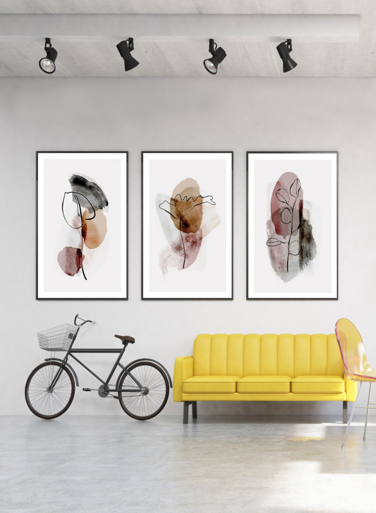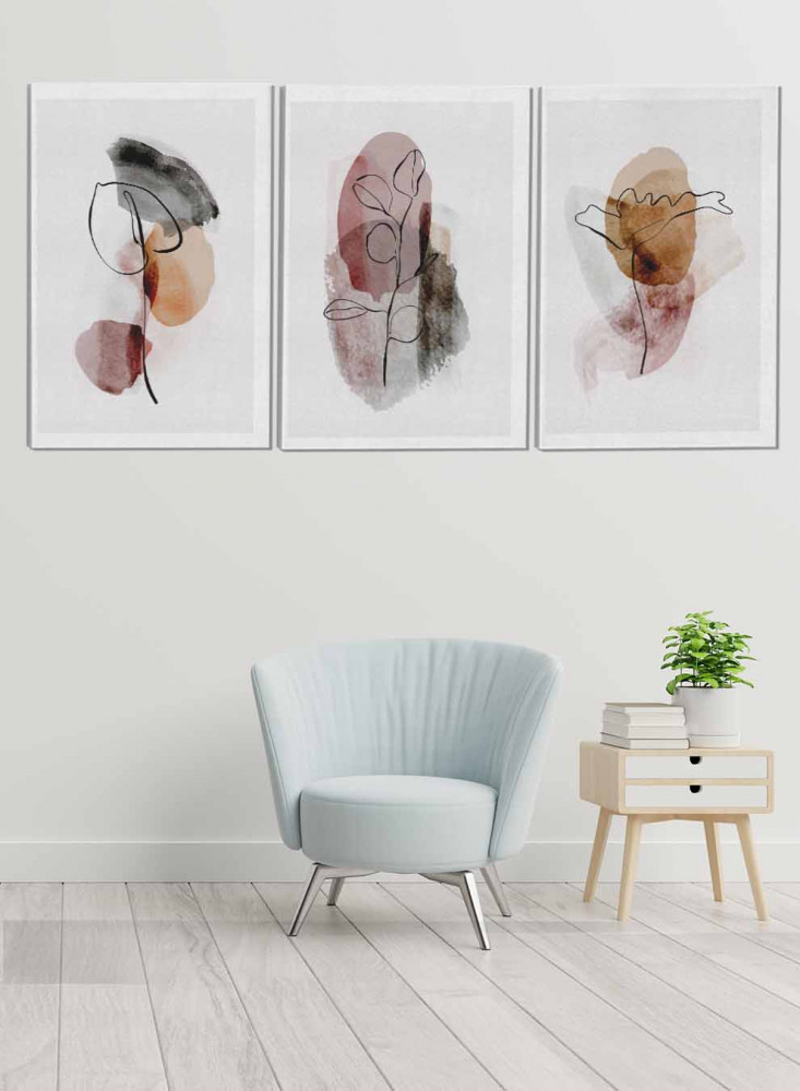 طقم من ٣ لوحات كانفاس على إطار خشبي، تصميم رسم بالألوان المائية، للمنزل، غرفة المعيشة، المكتب، الديكور