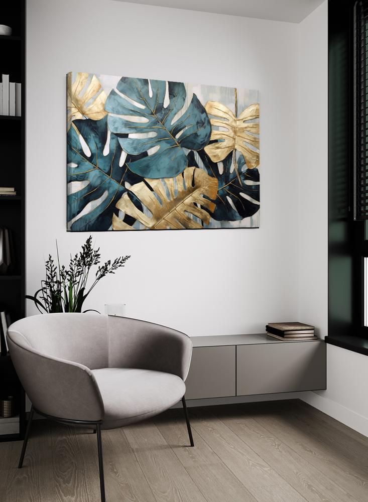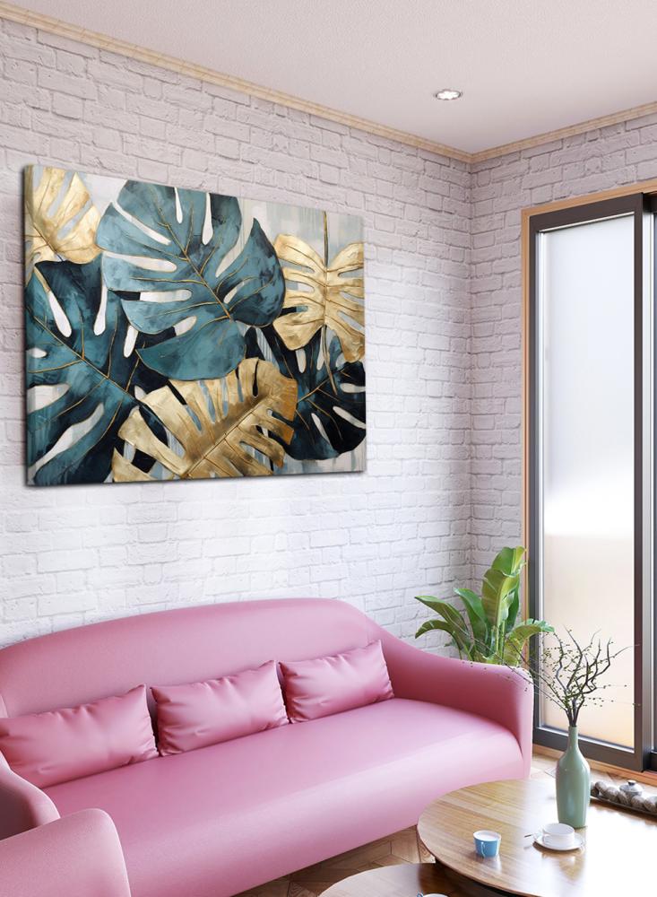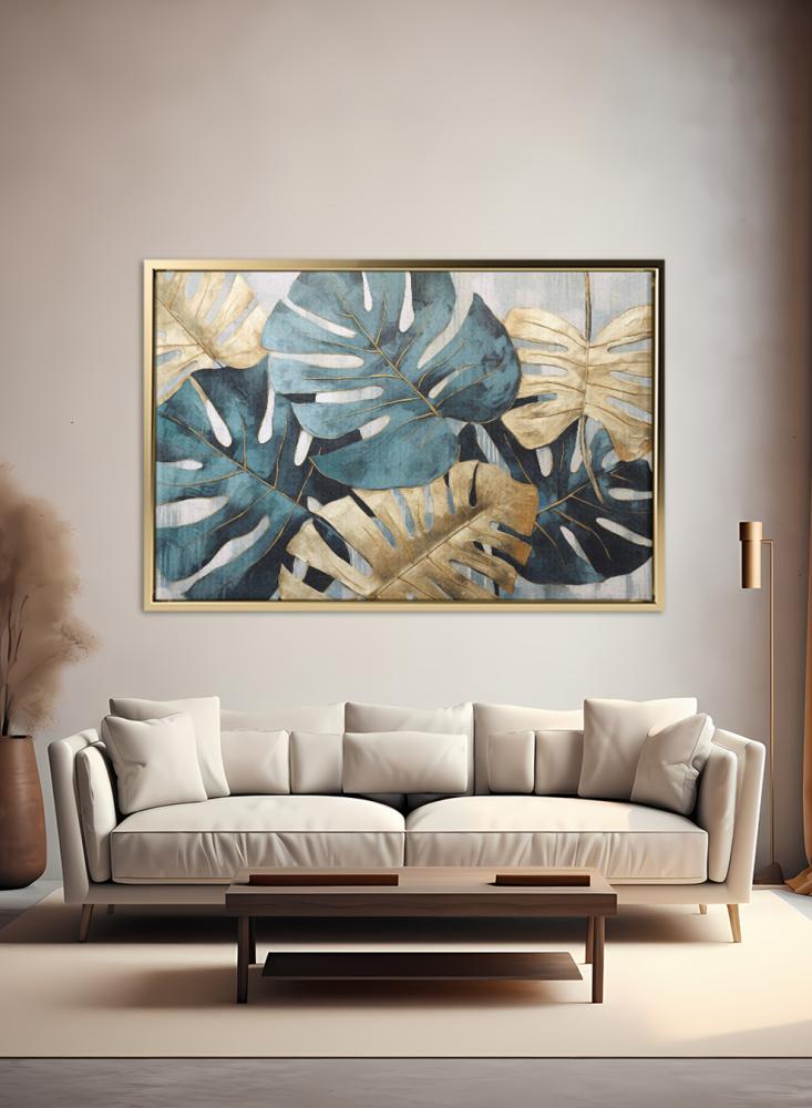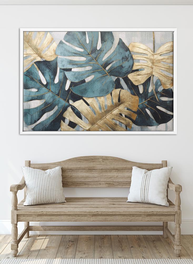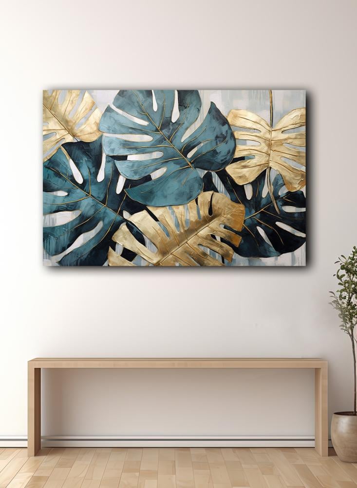 لوحة كانفاس على إطار خشبي بتصميم أوراق استوائية
