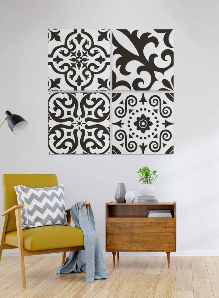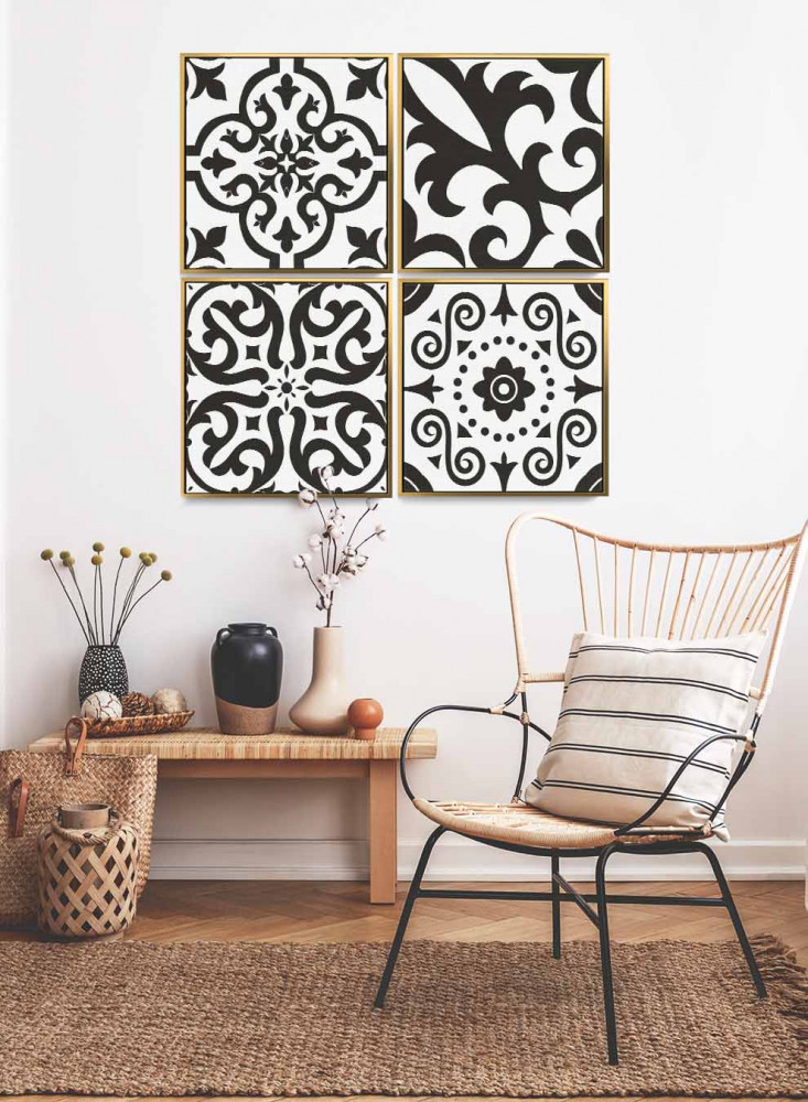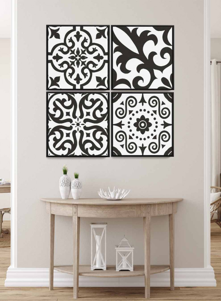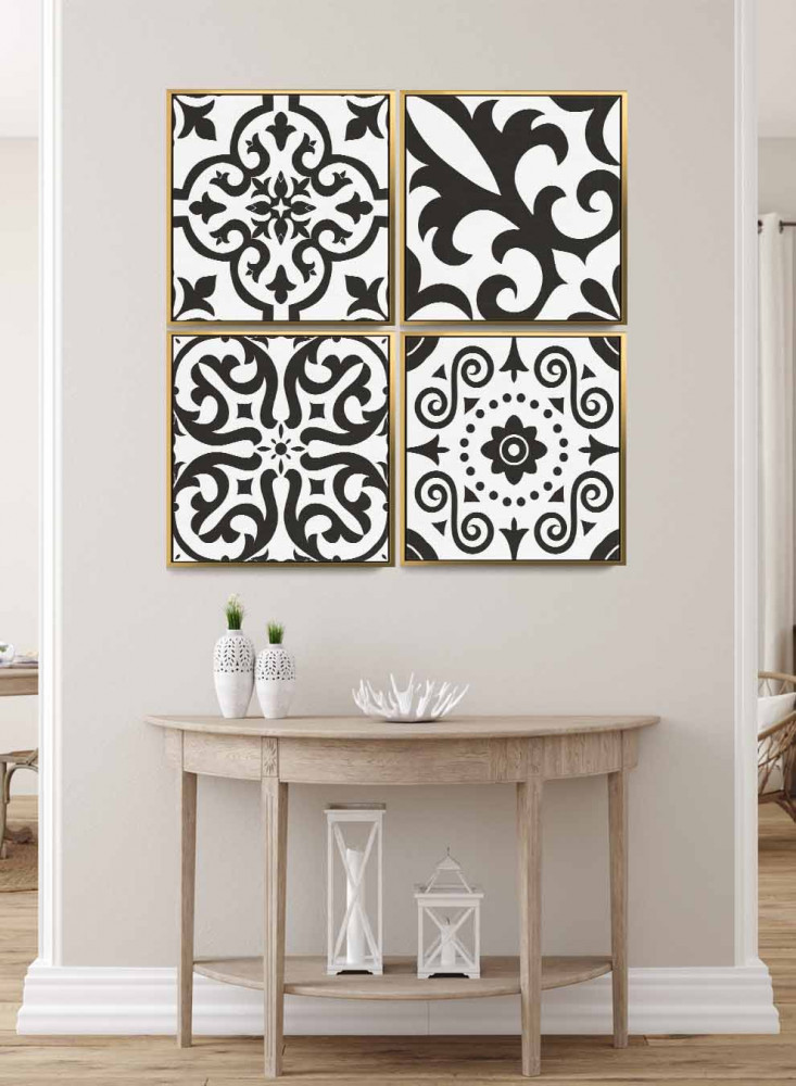 طقم من ٤ لوحات كانفاس مربع على إطار خشبي، تصميم أشكال فنية، للمنزل، غرفة المعيشة، المكتب، الديكور