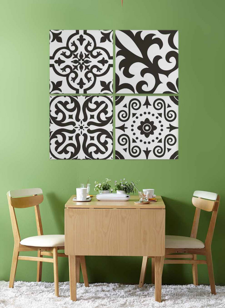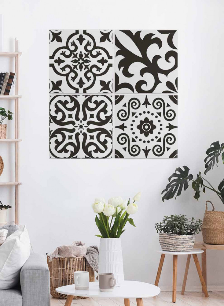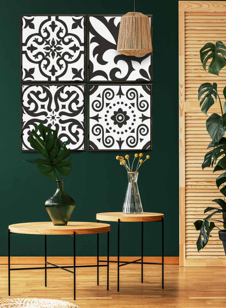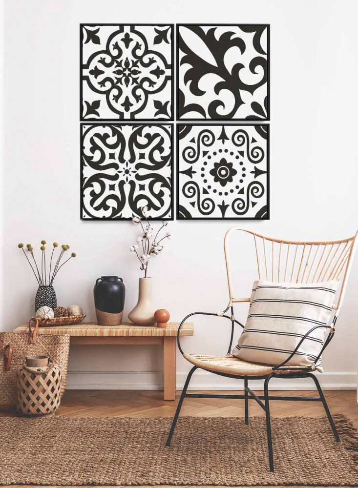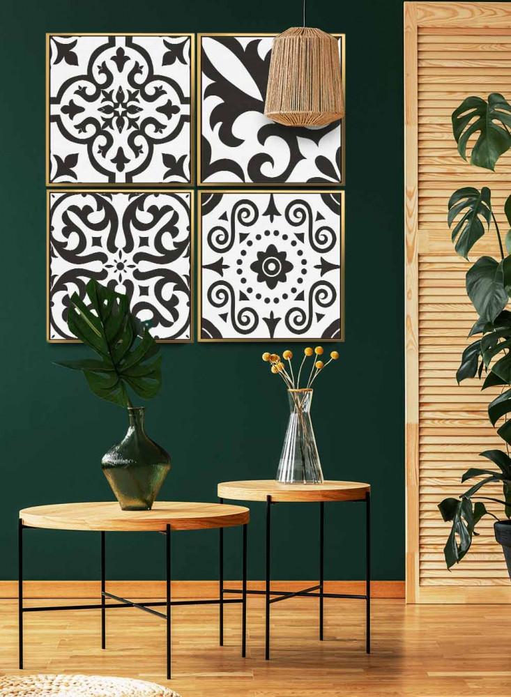 طقم من ٤ لوحات كانفاس مربع على إطار خشبي، تصميم أشكال فنية، للمنزل، غرفة المعيشة، المكتب، الديكور