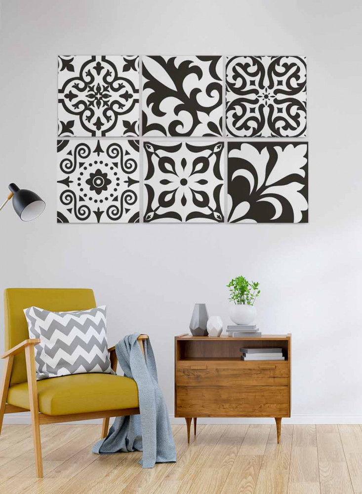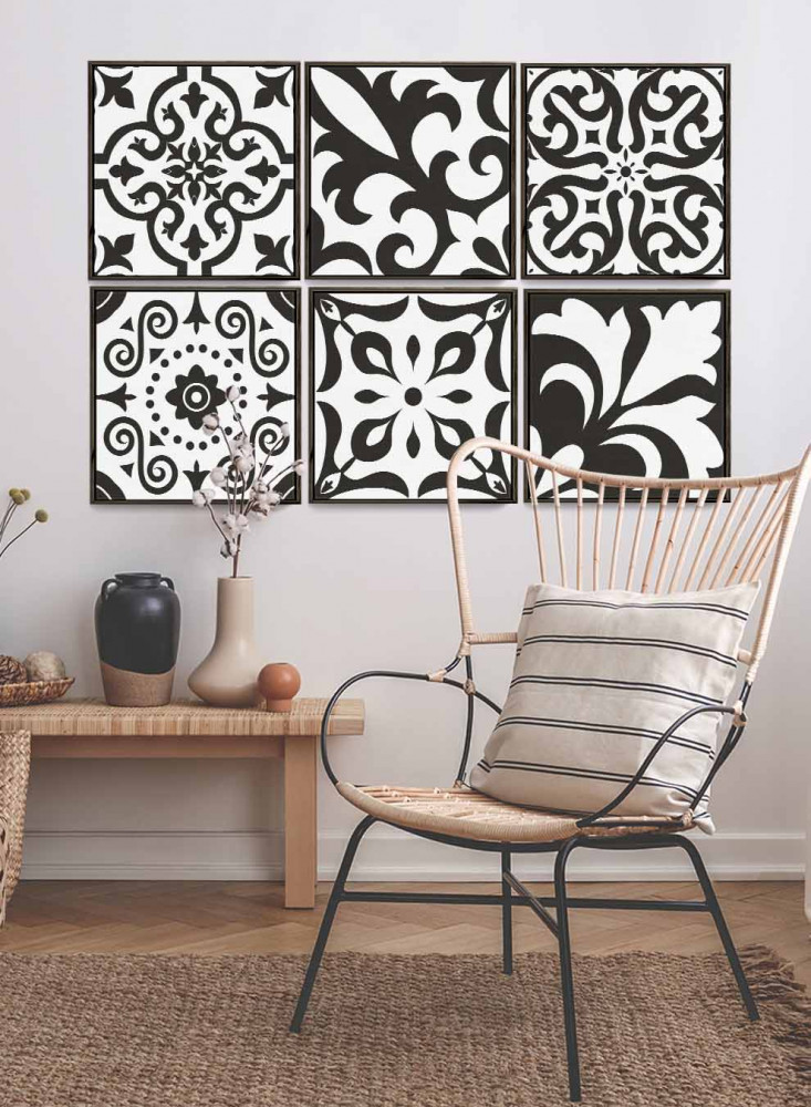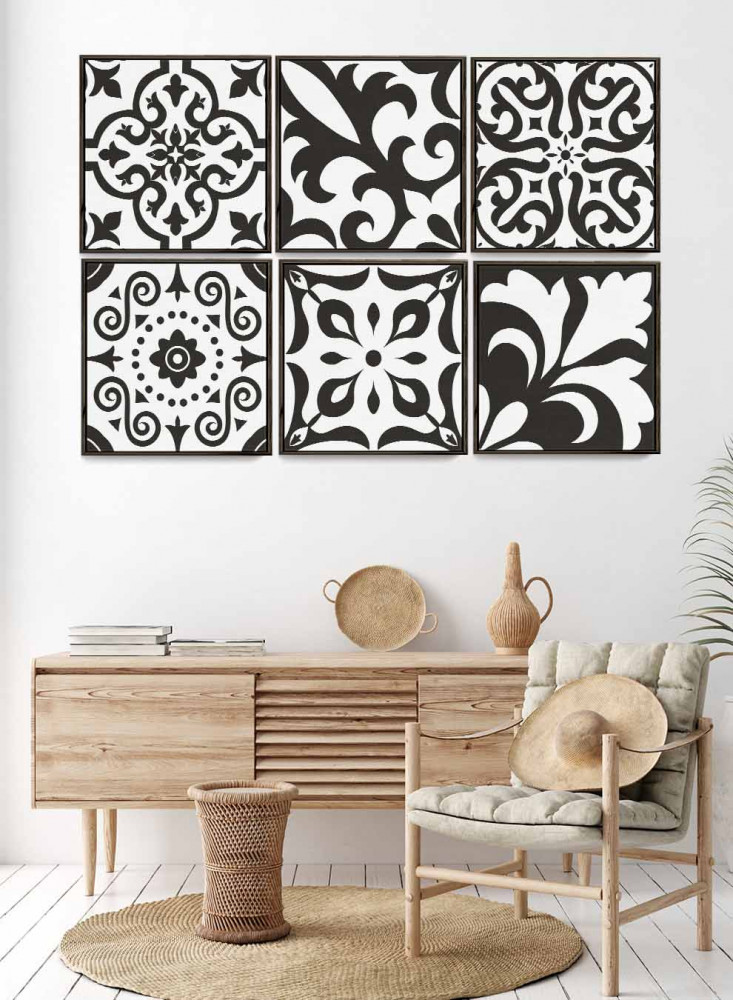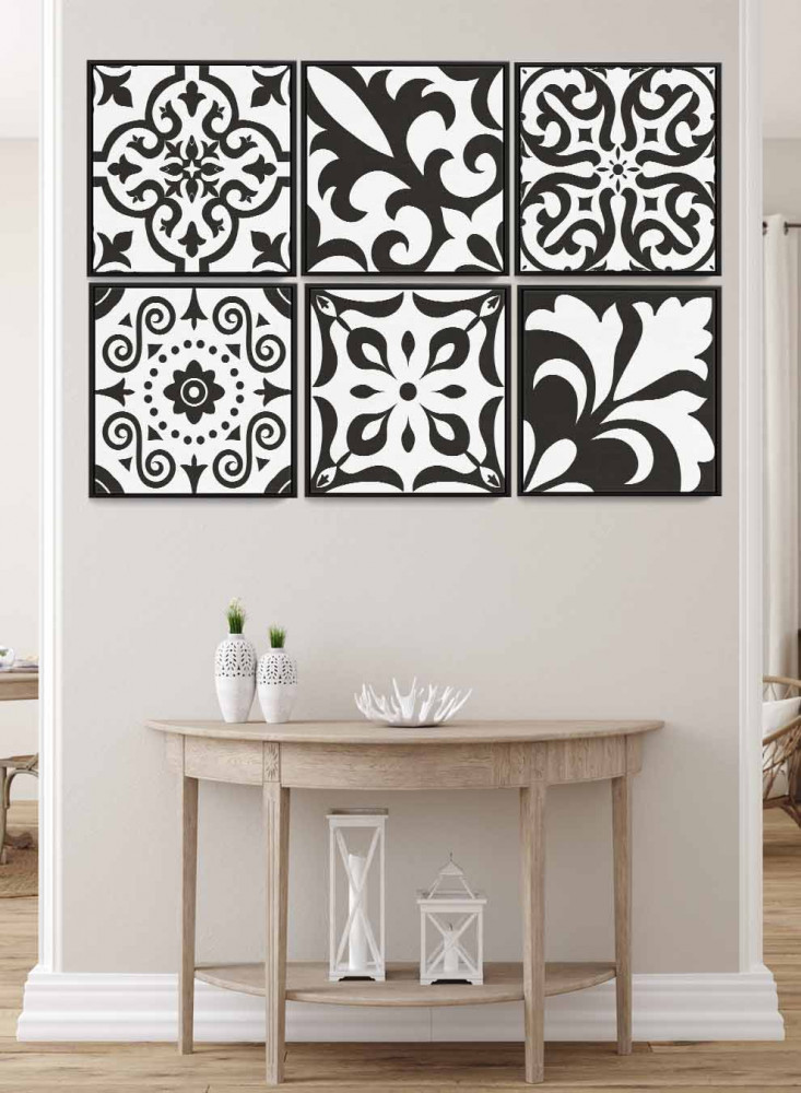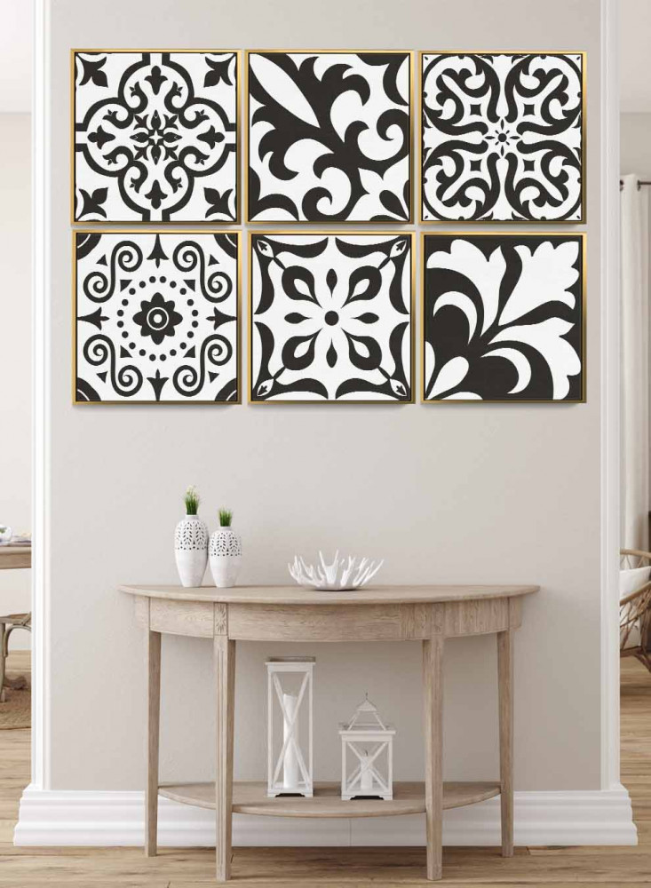 طقم من ٦ لوحات كانفاس مربع على إطار خشبي، تصميم اشكال تقليدية، للمنزل، غرفة المعيشة، المكتب، الديكور