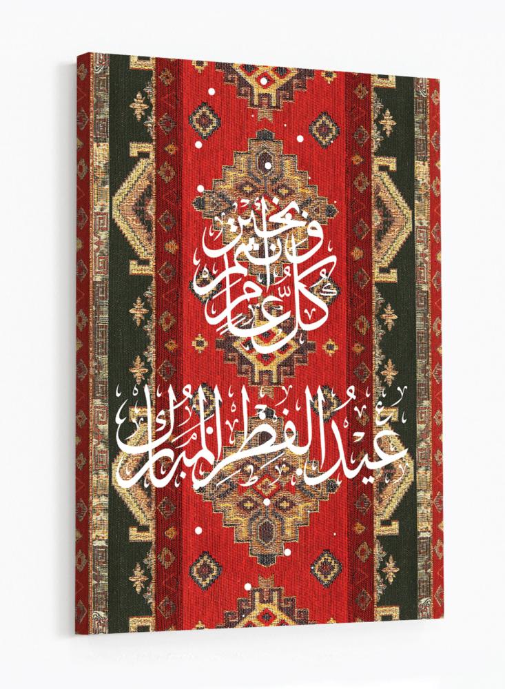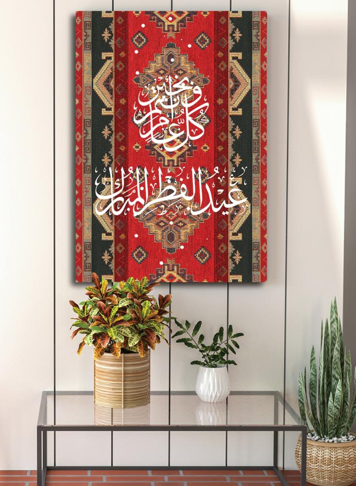 لوحة كانفاس على إطار خشبي بتصميم كل عام وأنتم بخير عيد الفطر المبارك على نمط سجادة