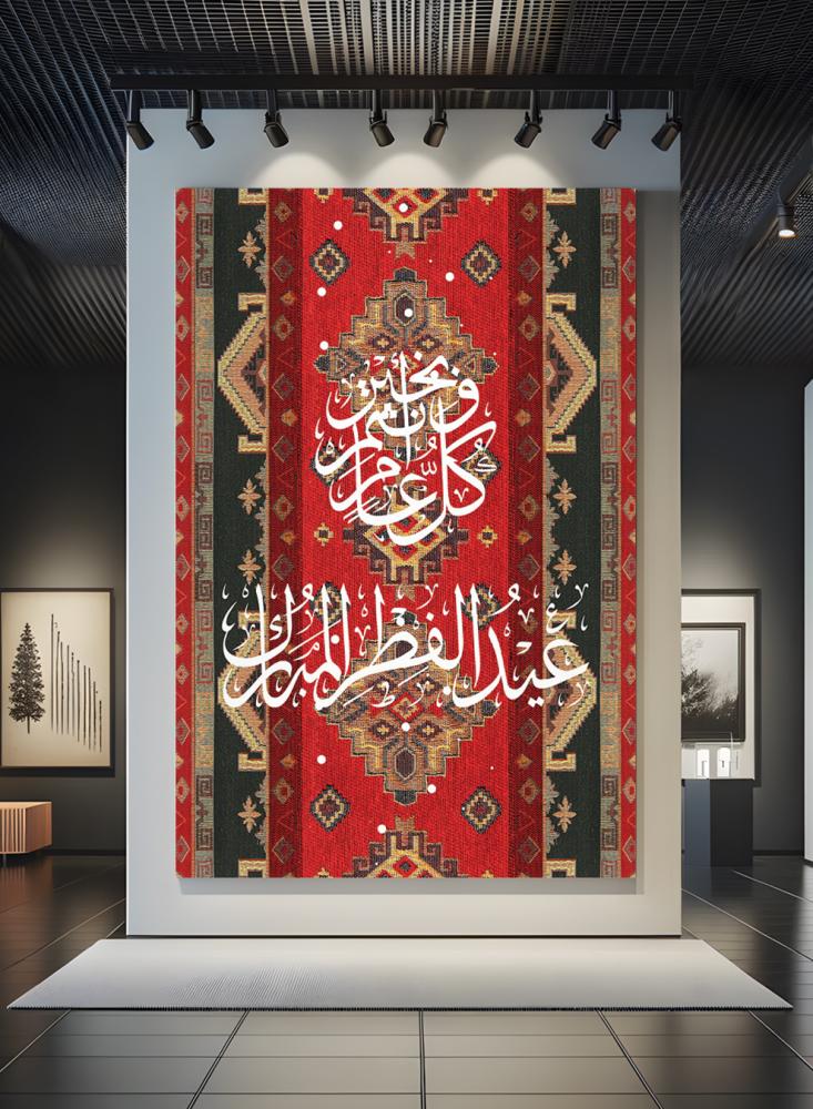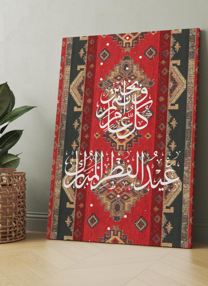 لوحة كانفاس على إطار خشبي بتصميم عيد الفطر المبارك على نمط سجادة