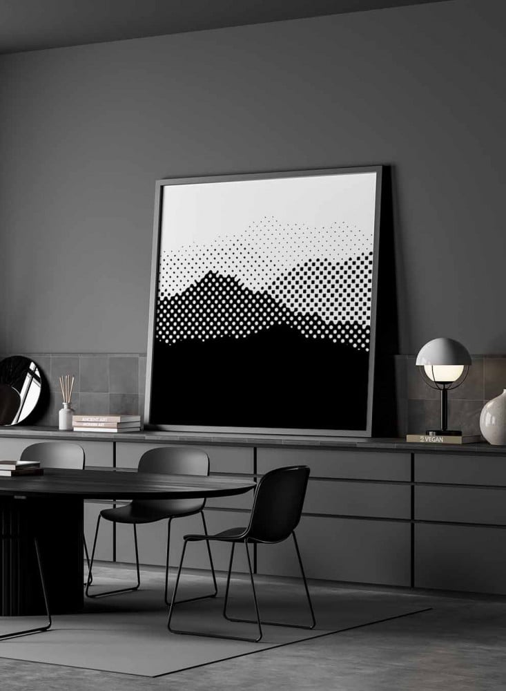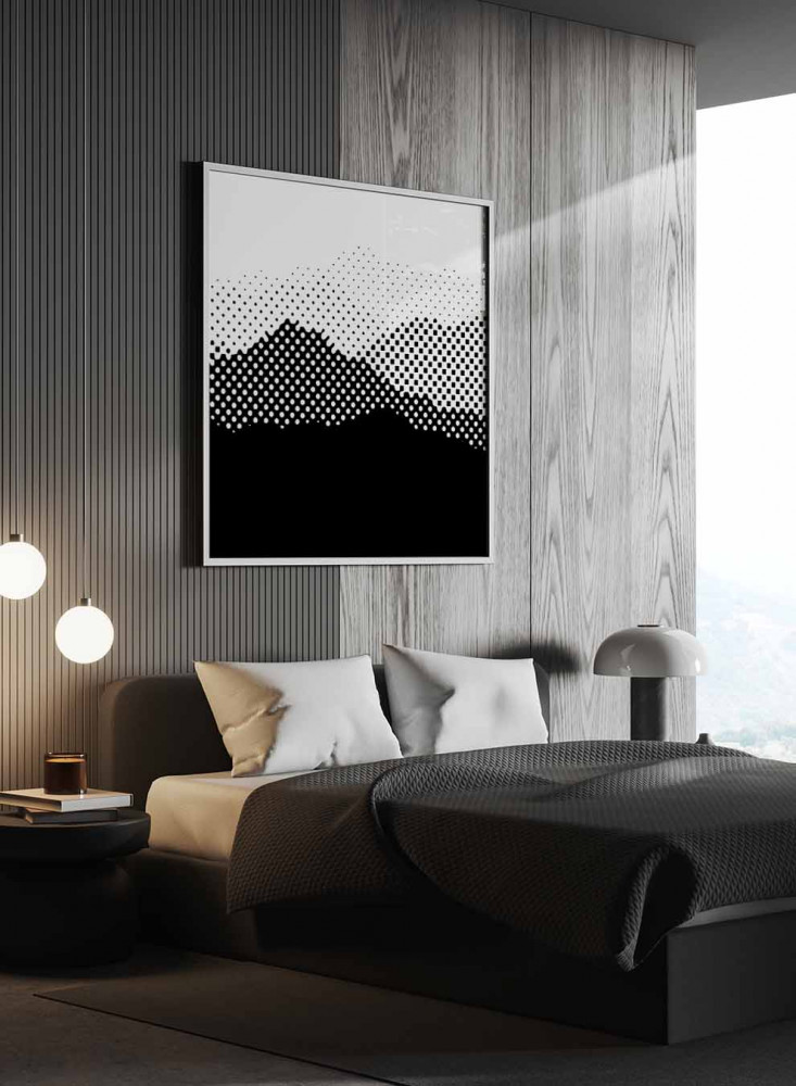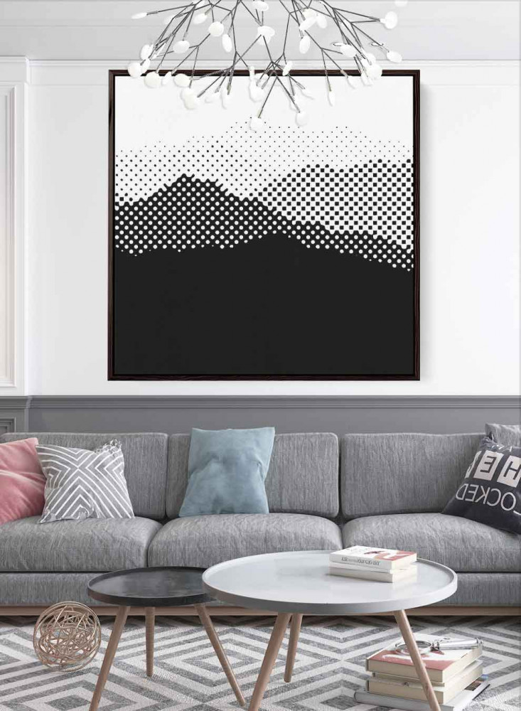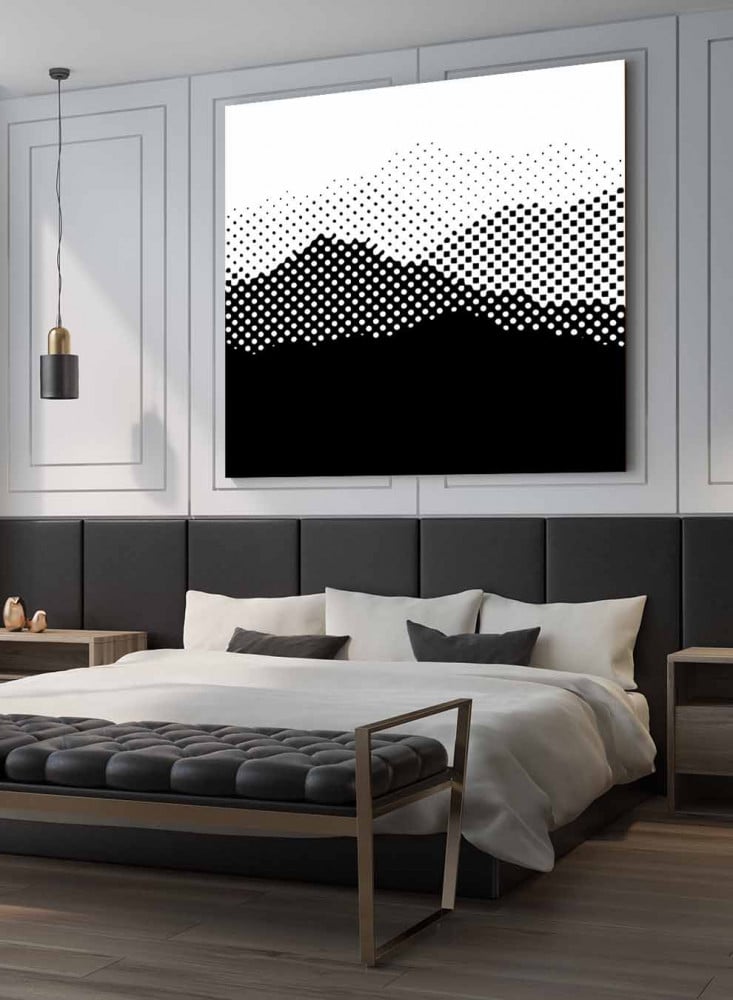 - تصميم نقاط تتلاشى الذي يشبه الجبال يعكس جمال الطبيعة وسحرها، مما يجعلها قطعة فنية فريدة تضيف لمسة من الروعة لأي غرفة.