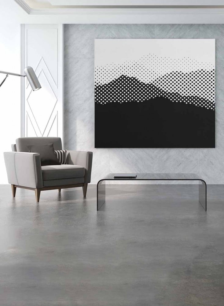 استمتع بجمال الطبيعة وروعة الفن الحديث في لوحة واحدة مذهلة من متجر لوحة. تتميز لوحة الكانفاس المربعة بـ تصميم نقاط تتلاشى في منظر طبيعي يشبه الجبال، مما يضفي شعورًا بالهدوء والانسجام على أي مساحة توضع فيها.