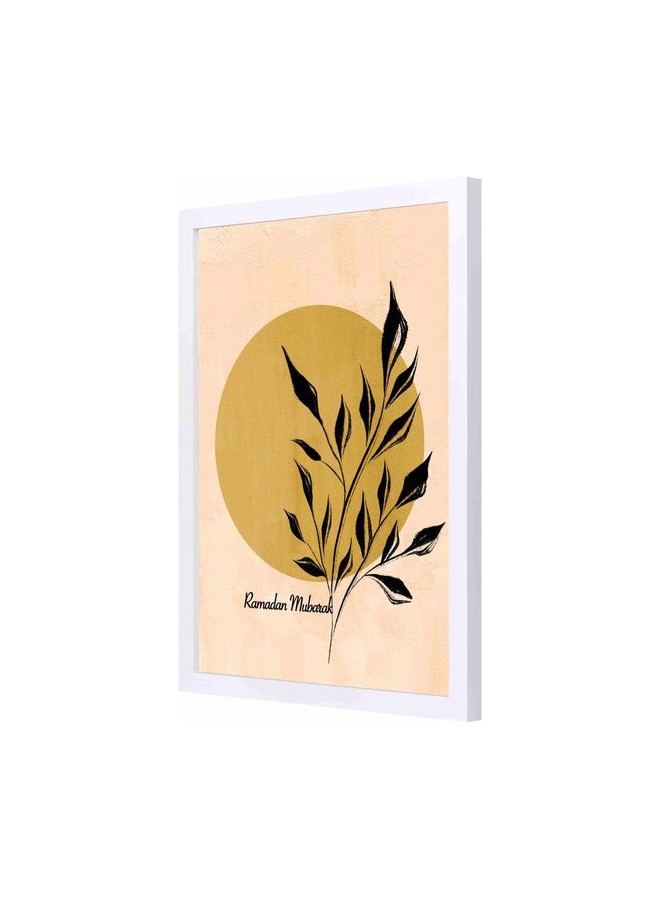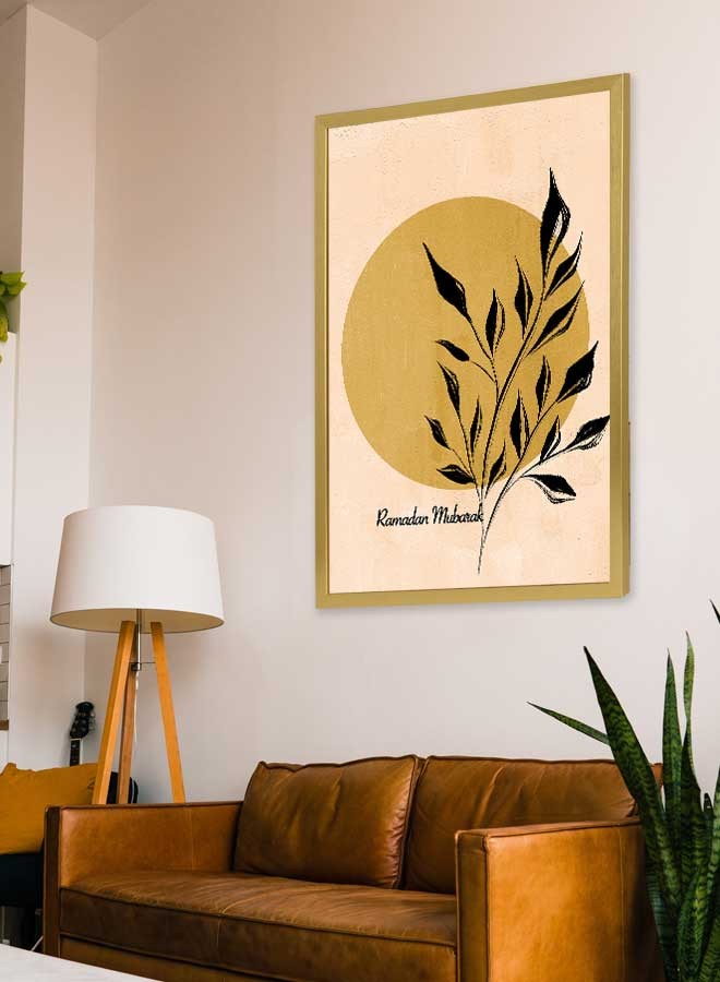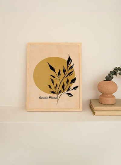 - لوحة جدارية بوستر بإطار بتصميم رمضان مبارك مع أوراق نباتية.