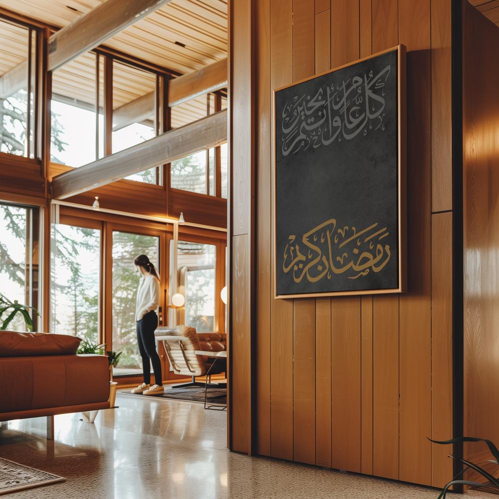 احصل الآن على لوحة فنية عن شهر رمضان بتصميم رمضان كريم كل عام وأنتم بخير من أجل تعليقها في منزلك ترحيبًا بالضيوف؛ خاصة أن في شهر رمضان تكثر العزائم والتجمعات العائلية. تتميز هذه اللوحة بجودتها العالية ومتانتها، مما يضمن لك الحصول على لوحة تدوم مواسم رمضانية عديدة.