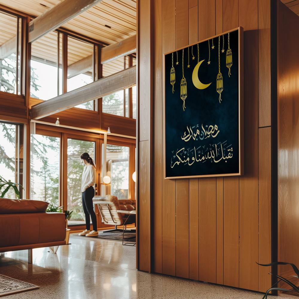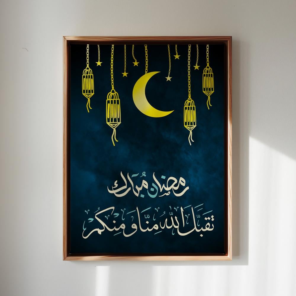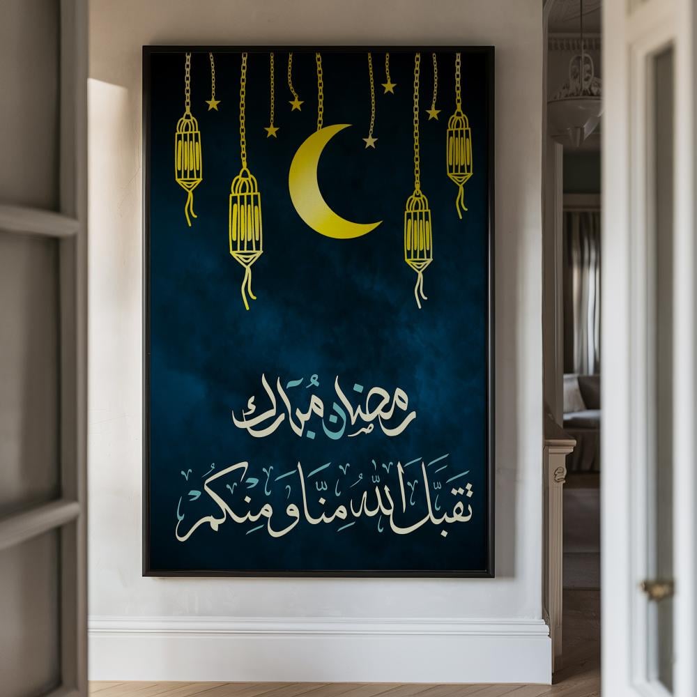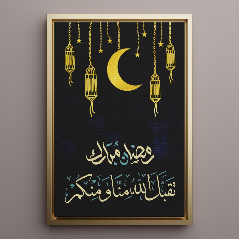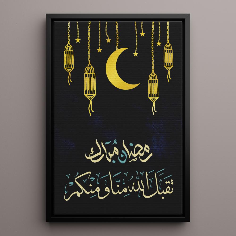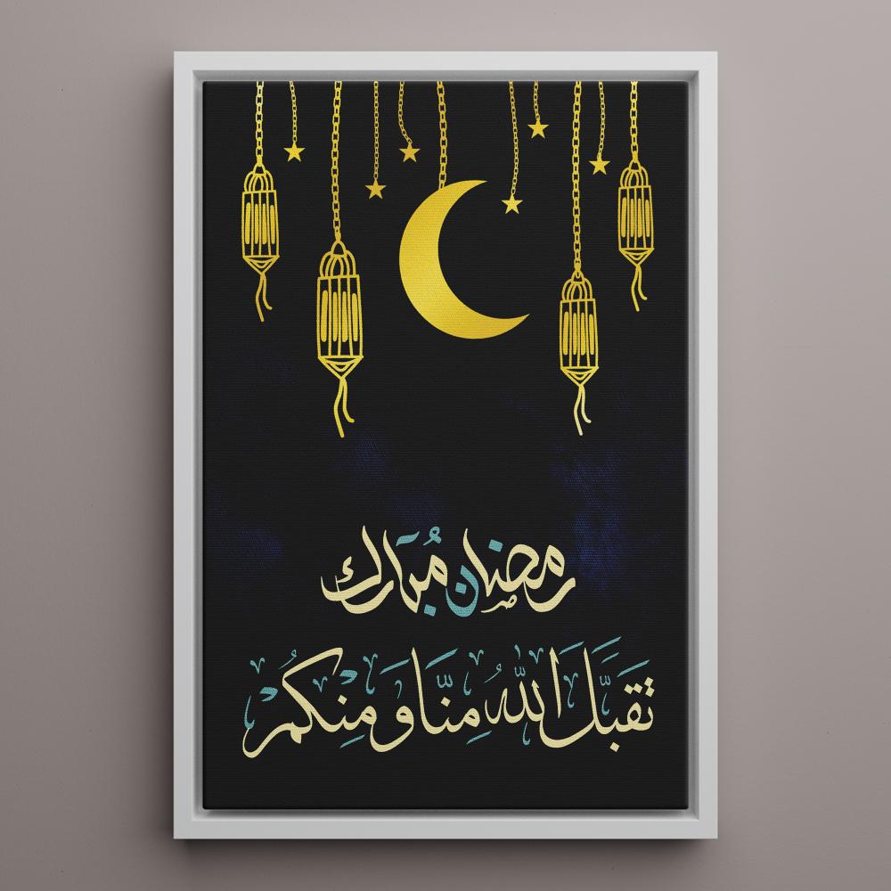 لوحة كانفاس على إطار خشبي بتصميم رمضان مبارك تقبل الله منا ومنكم