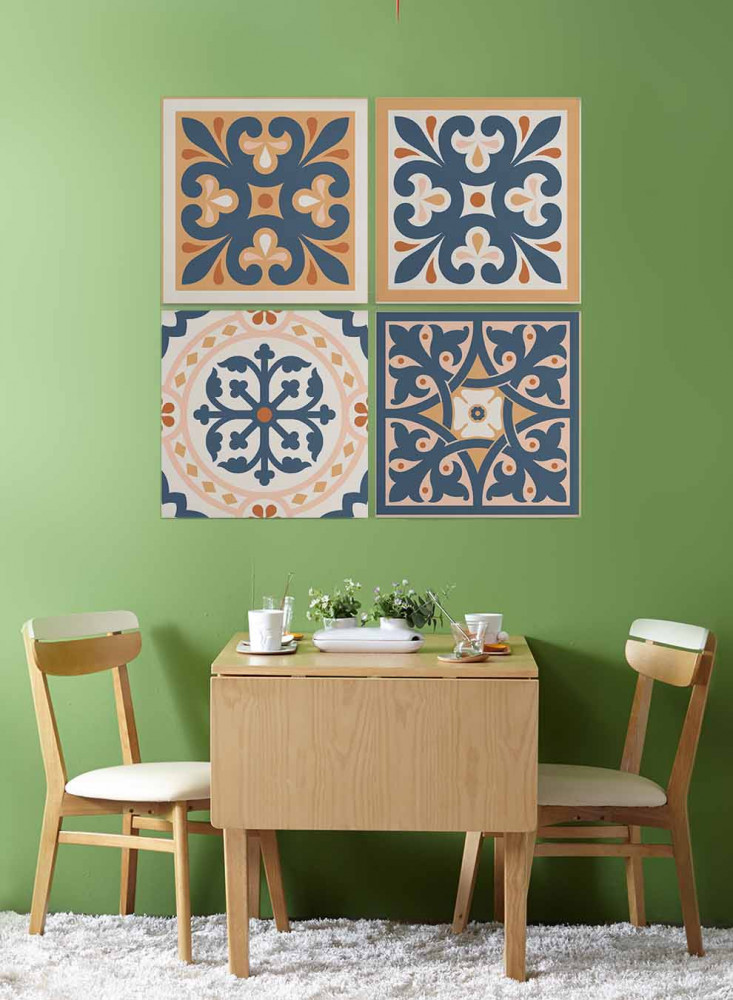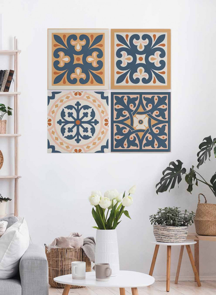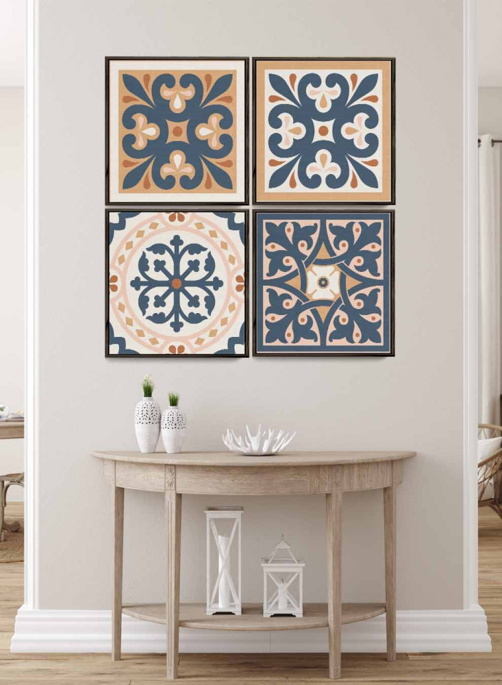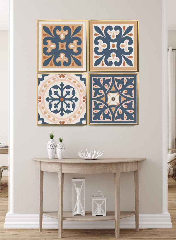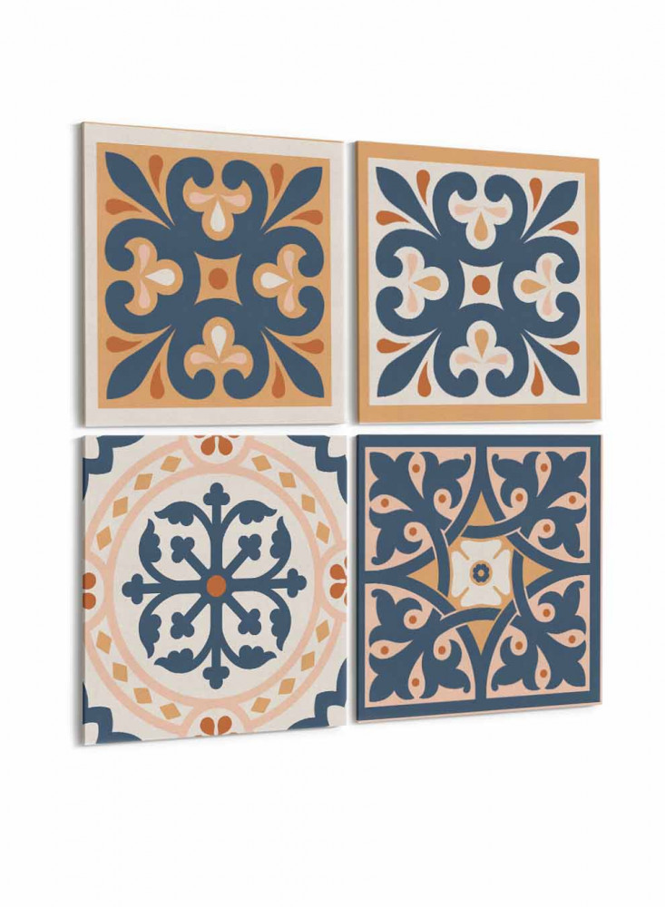 طقم من ٤ لوحات كانفاس مربع على إطار خشبي، تصميم فن تجريدي، للمنزل، غرفة المعيشة، المكتب، الديكور