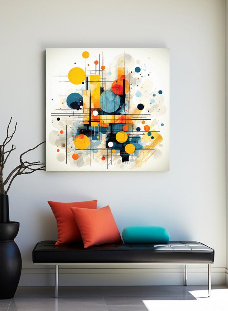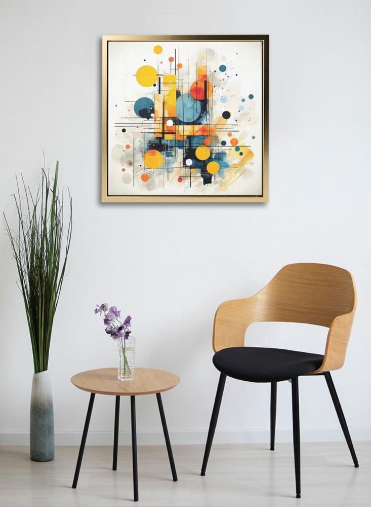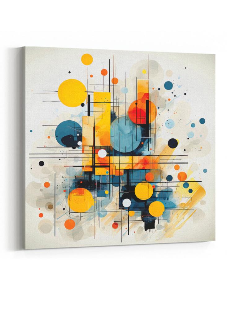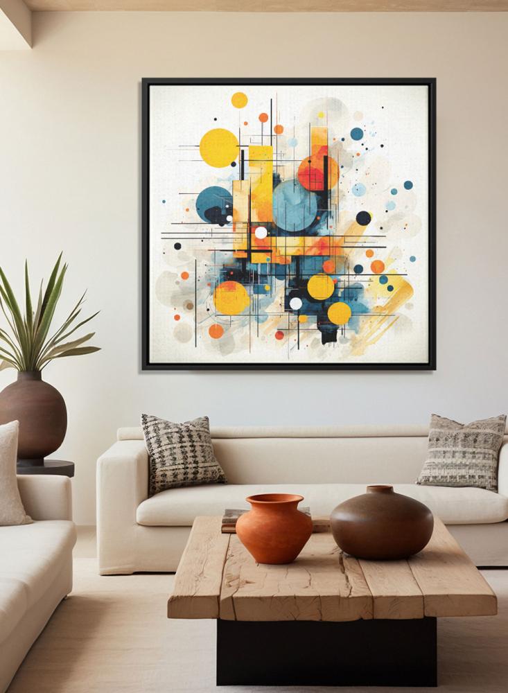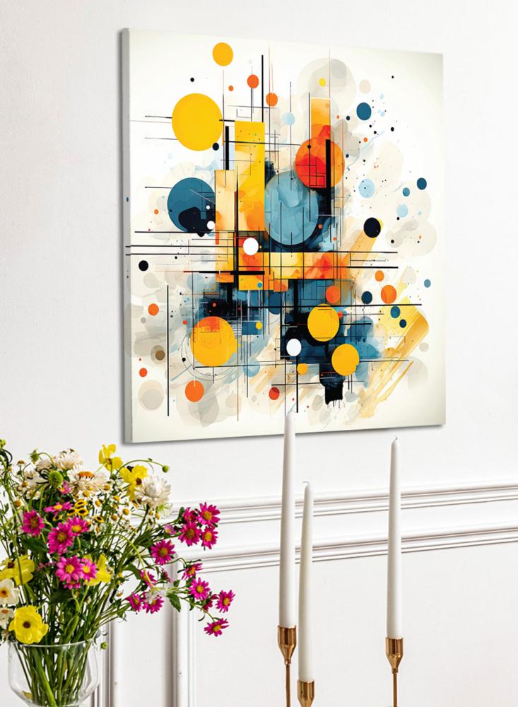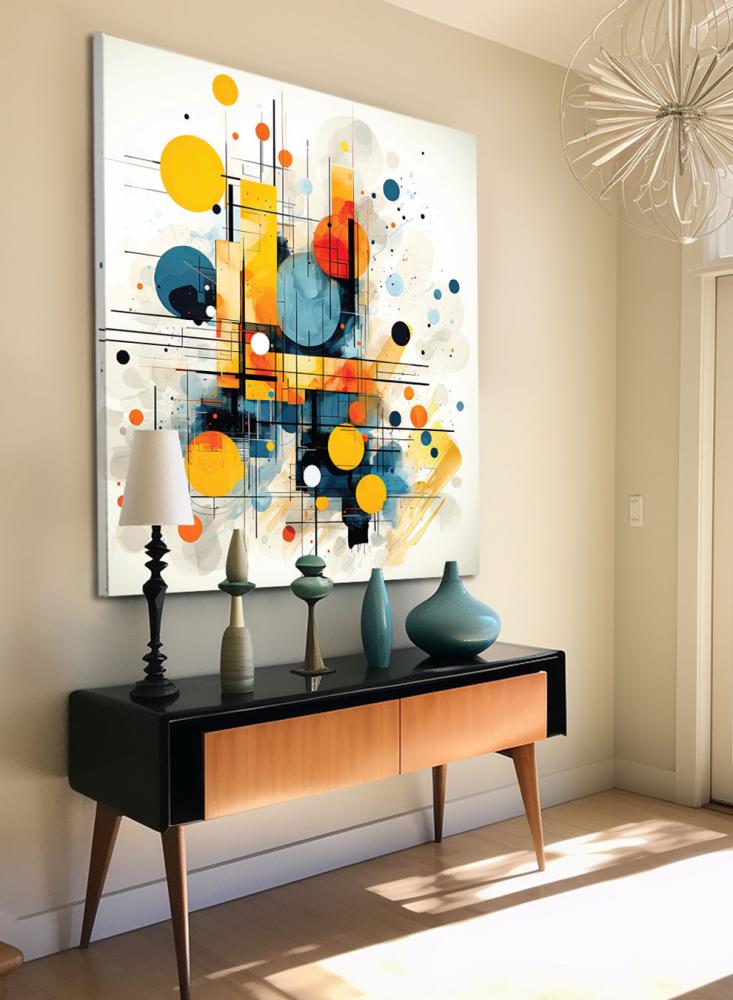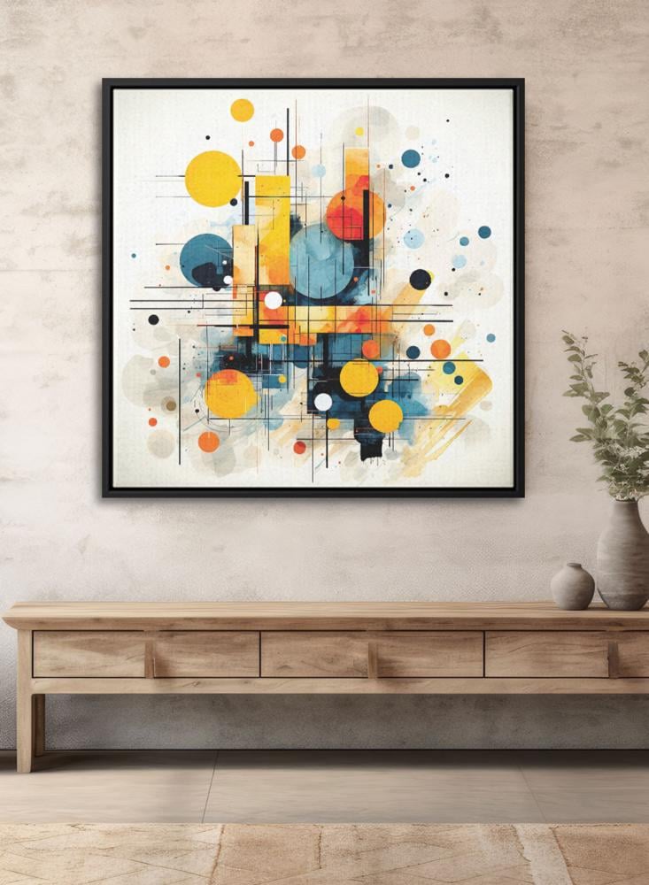 لوحة كانفاس على إطار خشبي بالفن التصوري لتصميم دوائر ملونة