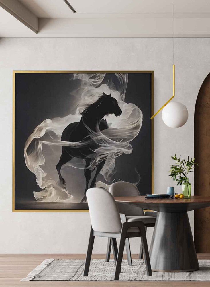 إذا كنت من محبى الأحصنة! فبالتأكيد هذه اللوحة ستكون مناسبة لك. مع لوحة حصان كبيرة من لوحة ستحصل على مظهر جذاب وأنيق وقوي، حيث تعبر الأحصنة عن الرقي والشجاعة والقوة.