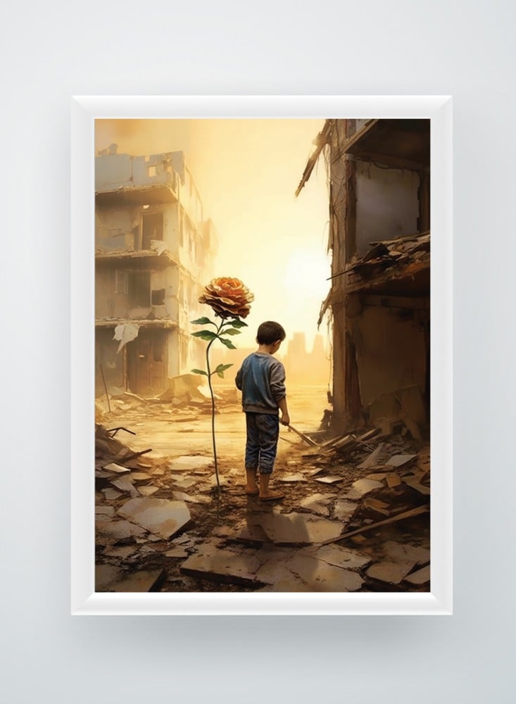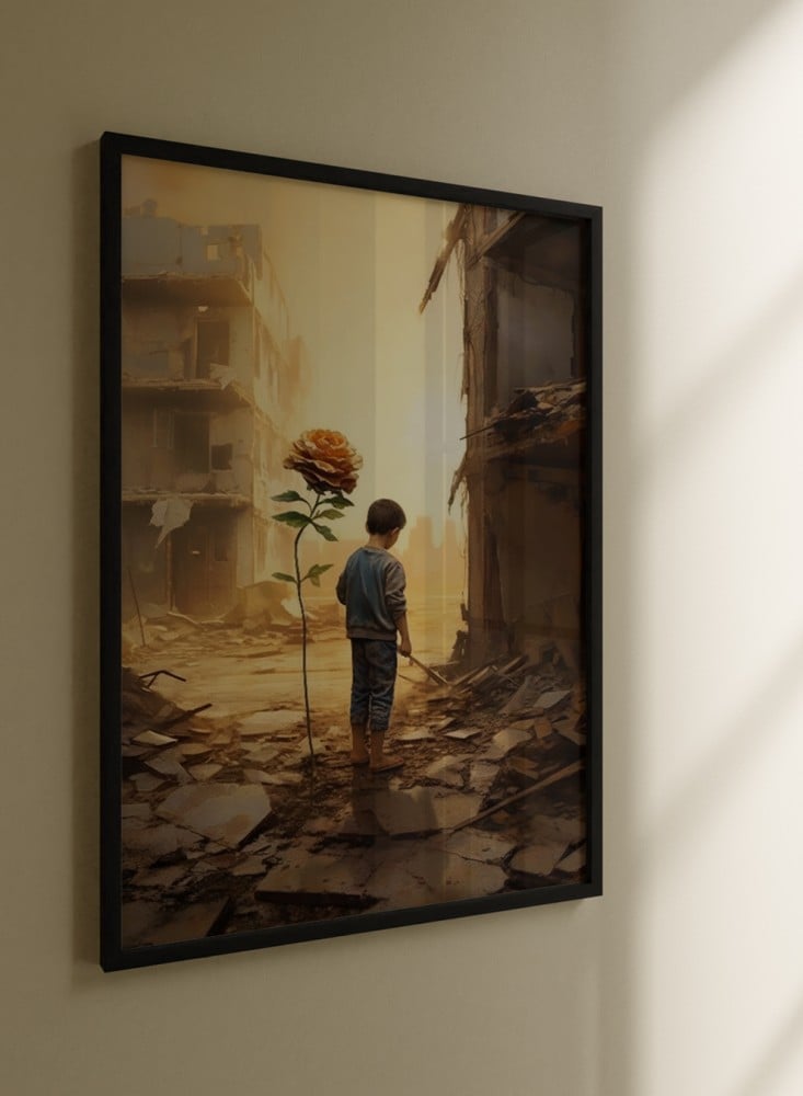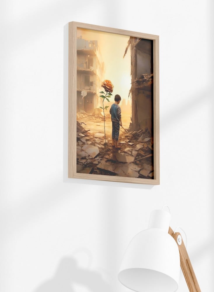 - لوحة جدارية بوستر بإطار بتصميم لمحة من الأمل لطفل فلسطيني.