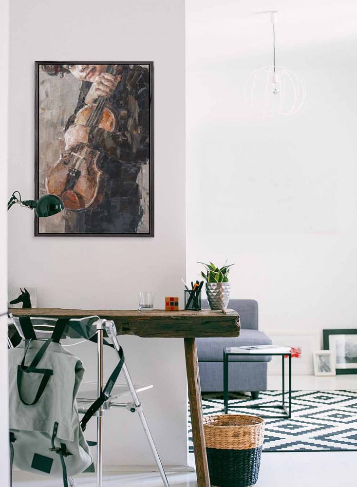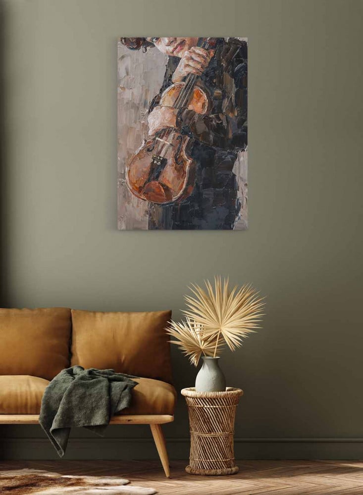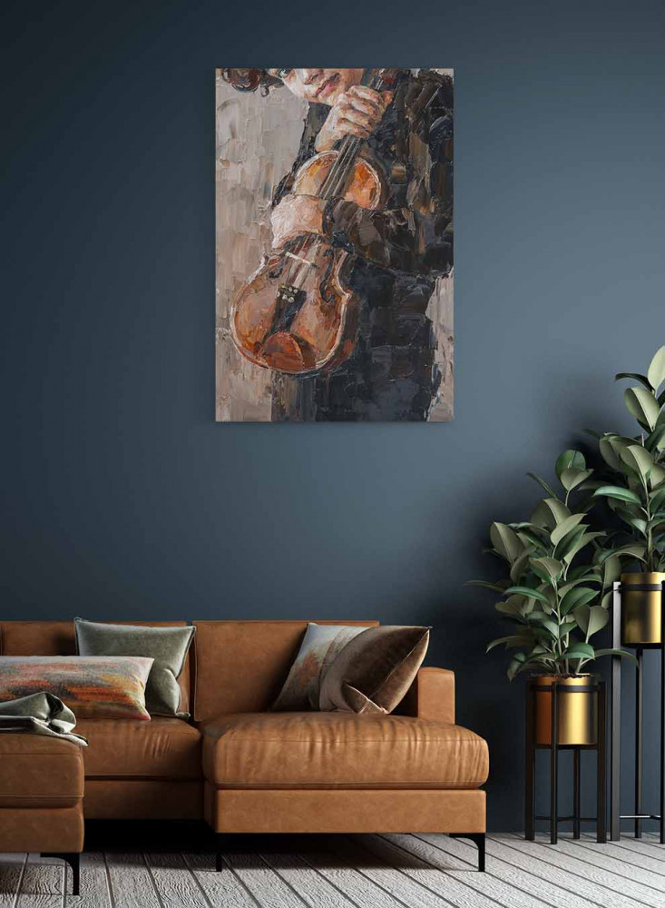 لوحة كانفاس على إطار خشبي، تصميم ولد مع الكمان، للمنزل، غرفة المعيشة، المكتب، الديكور