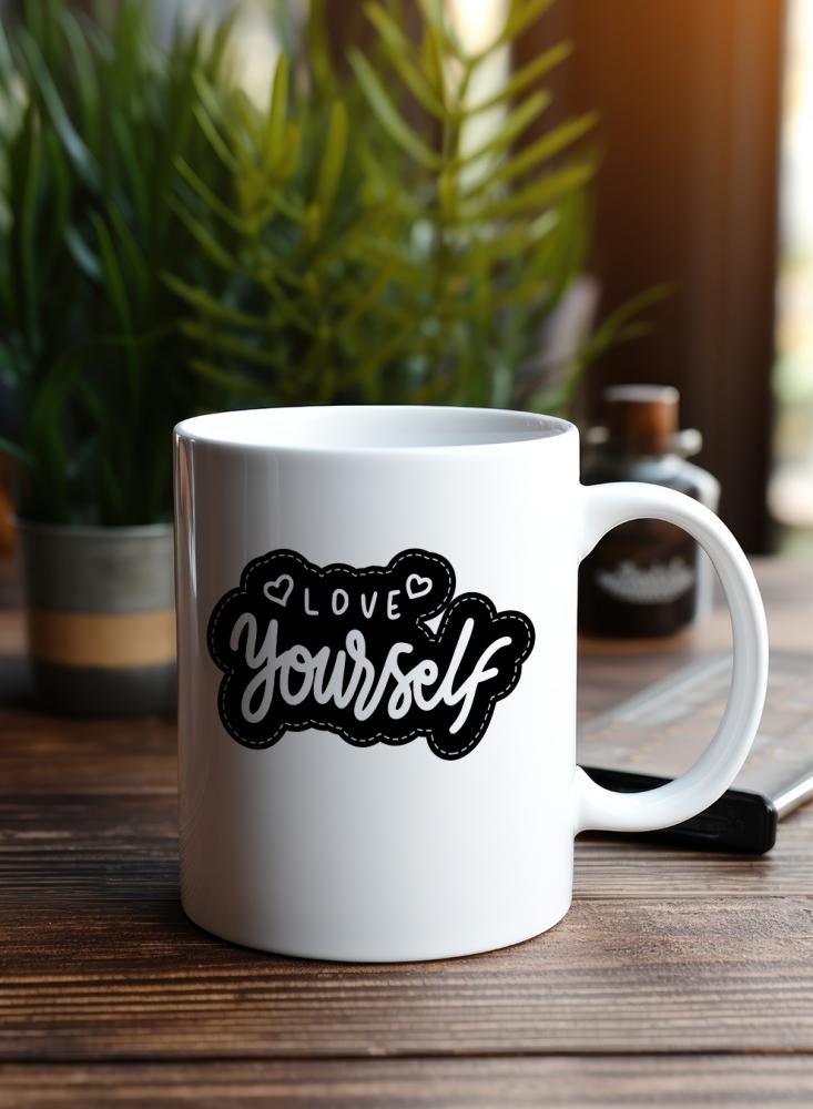 مواصفات كوب مشروبات برسالة إيجابية "حب نفسك"