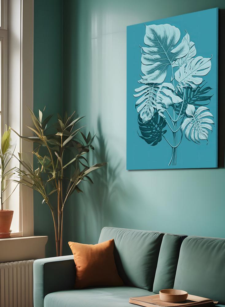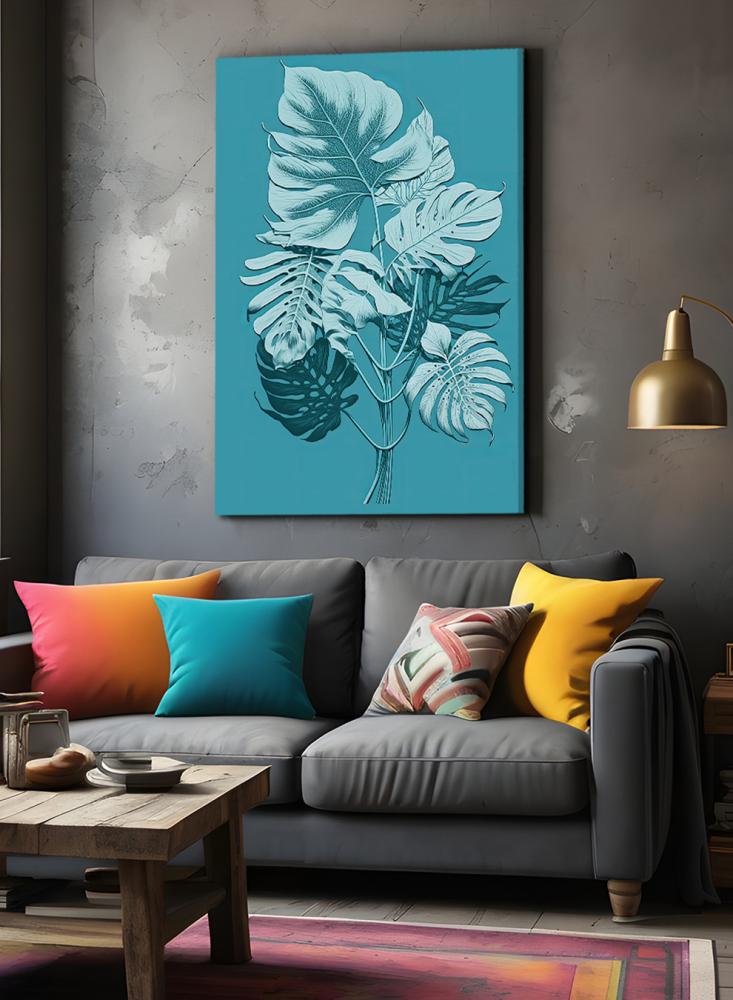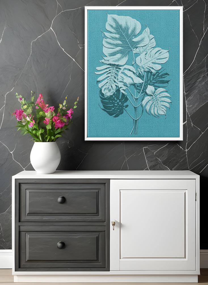 لوحة كانفاس على إطار خشبي بتصميم اوراق استوائية