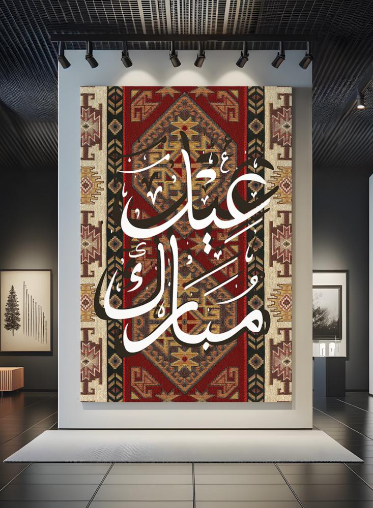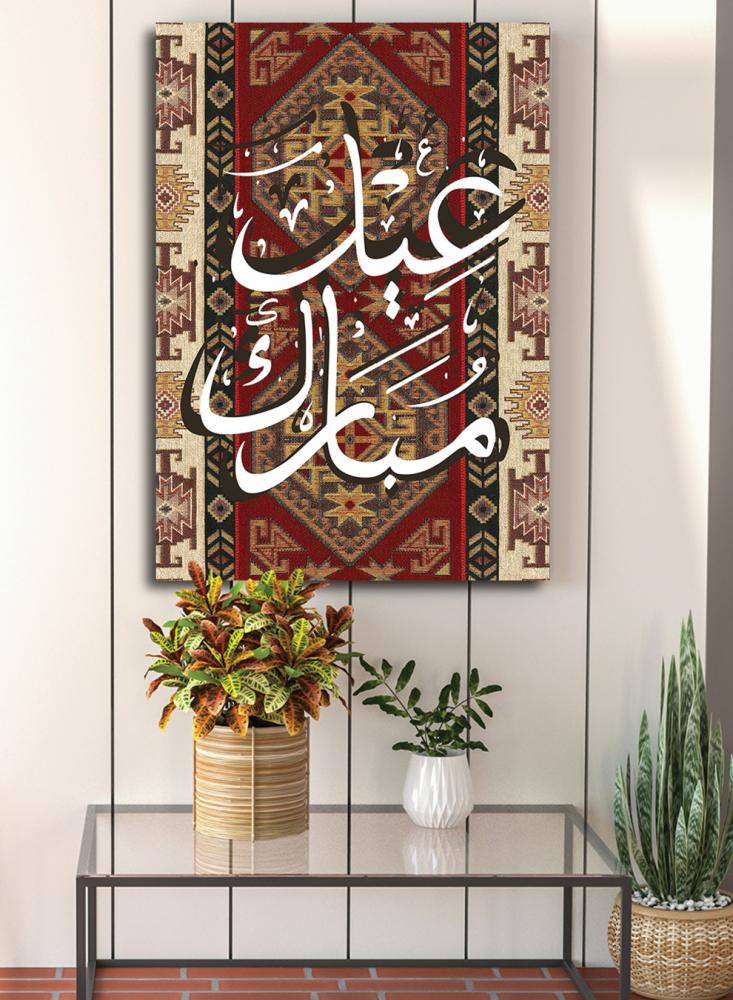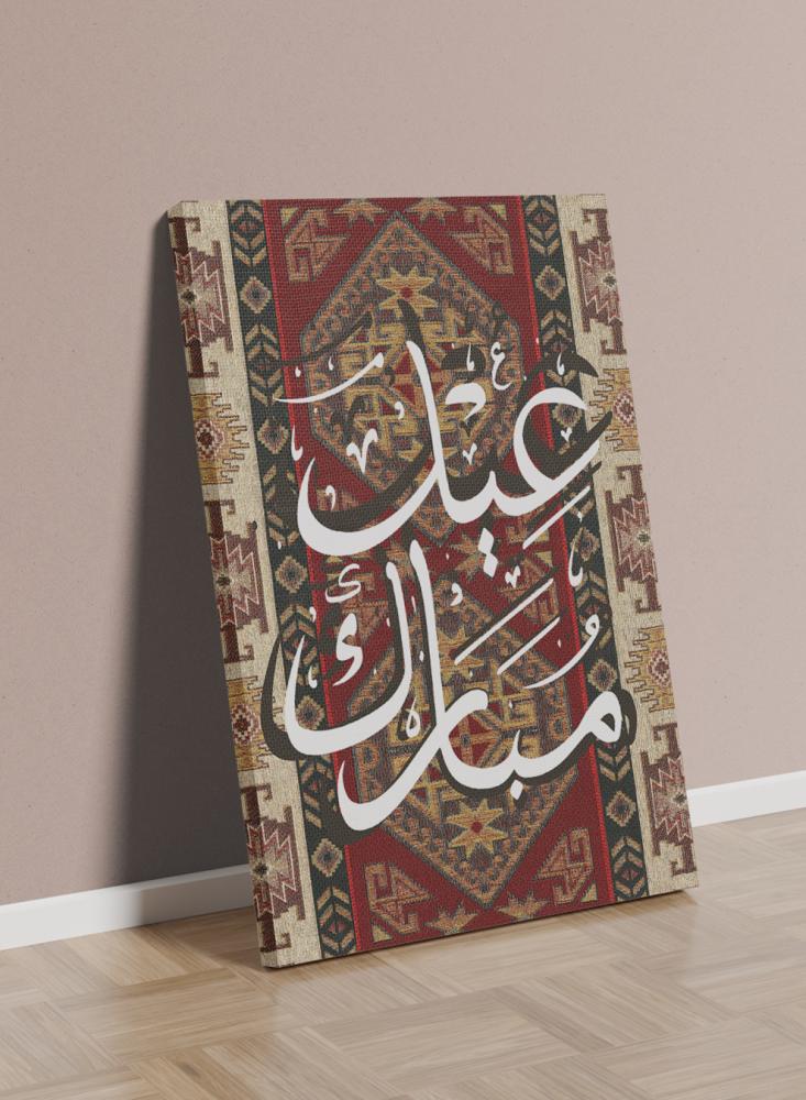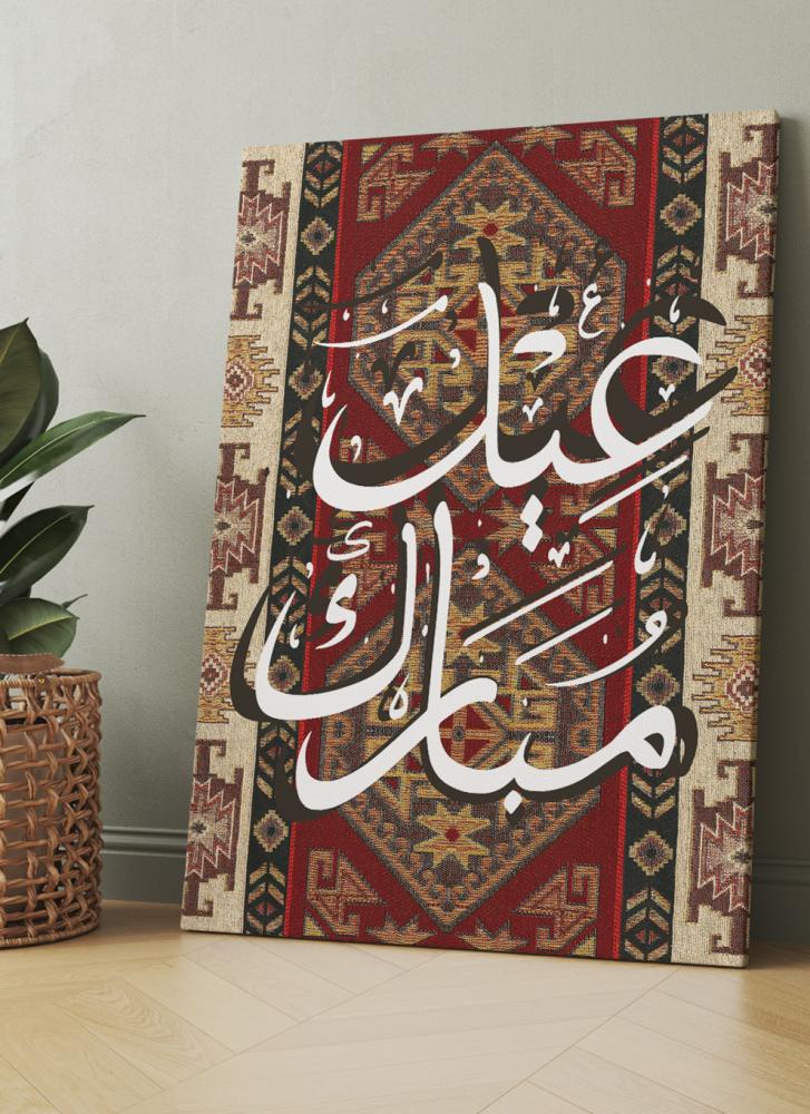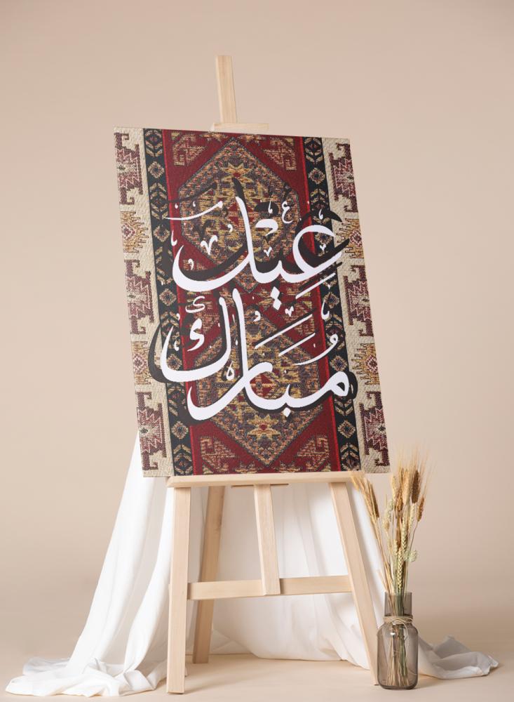 لوحة كانفاس على إطار خشبي بتصميم عيد مبارك على نمط سجادة