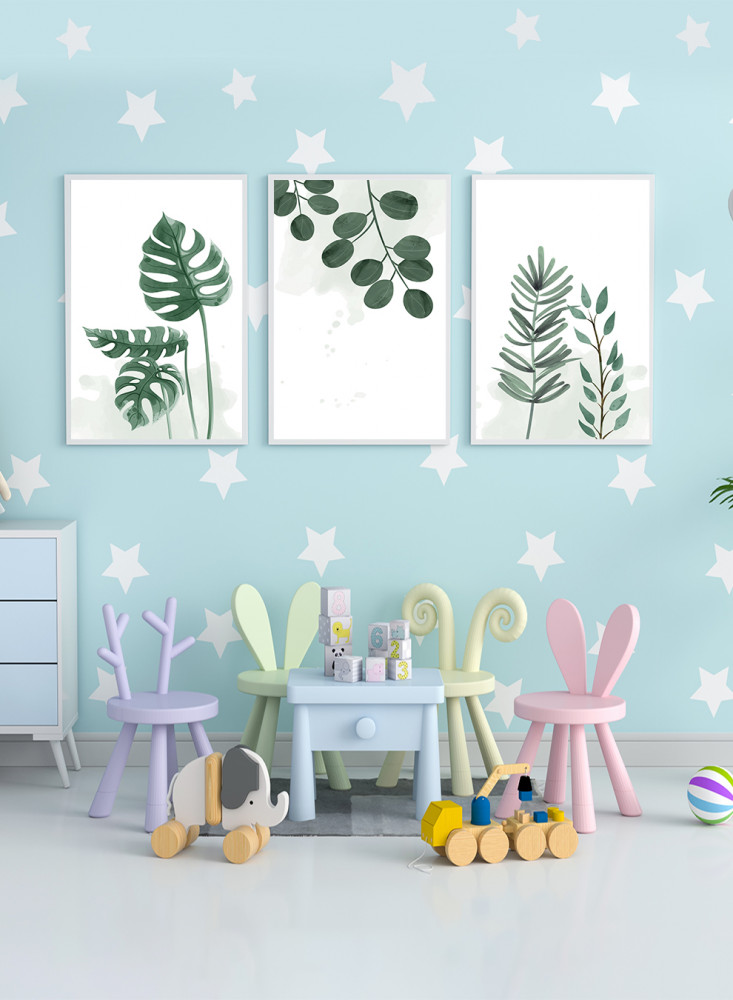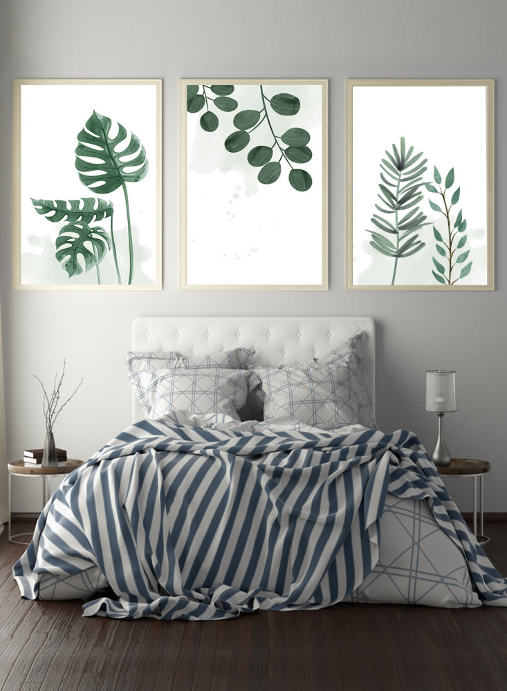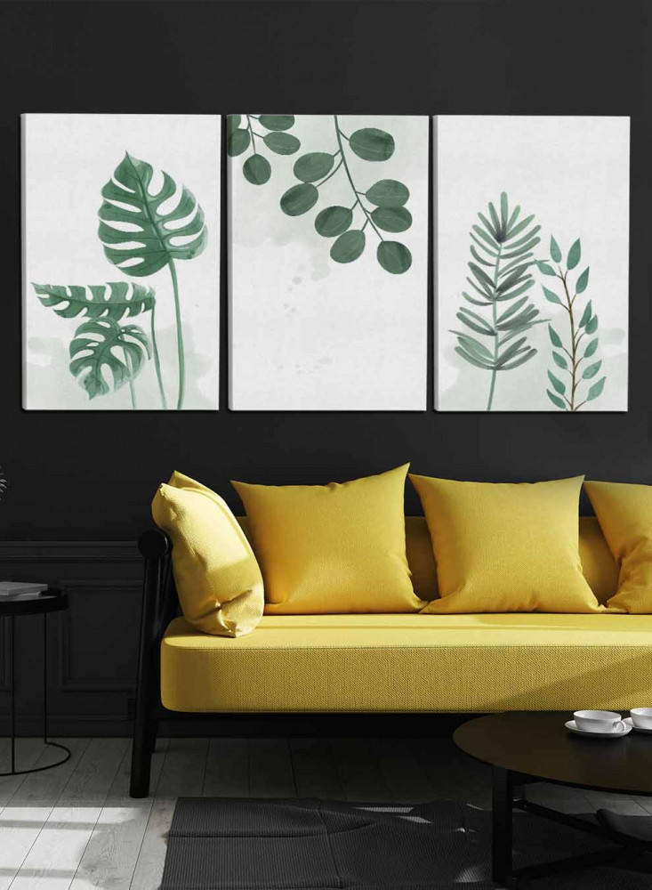 طقم من ٣ لوحات كانفاس على إطار خشبي، تصميم أوراق نباتية برية، للمنزل، غرفة المعيشة، المكتب، الديكور
