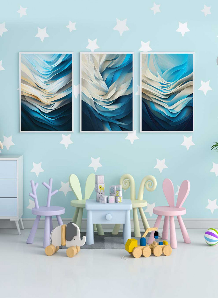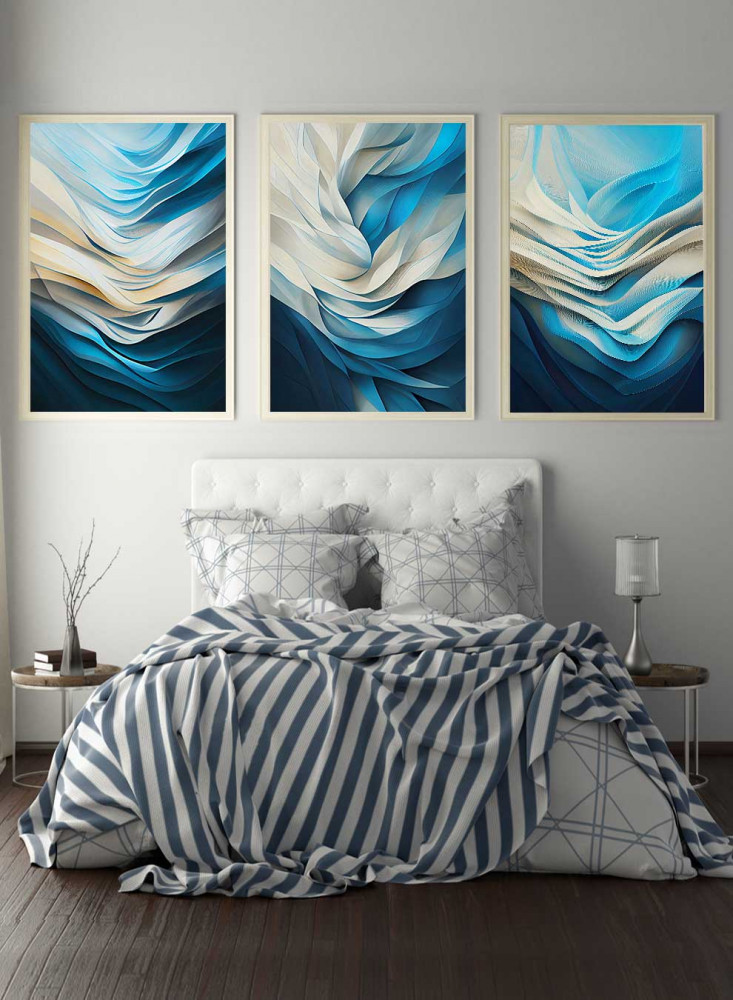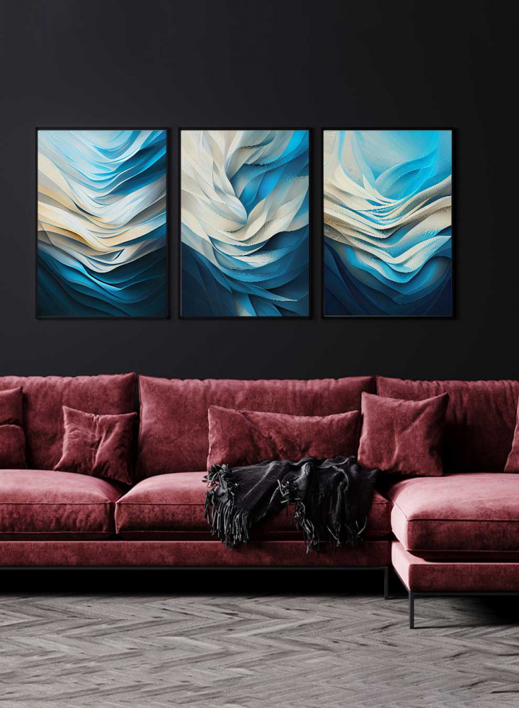 طقم من ٣ لوحات كانفاس على إطار خشبي، تصميم تجريدي، للمنزل، غرفة المعيشة، المكتب، الديكور