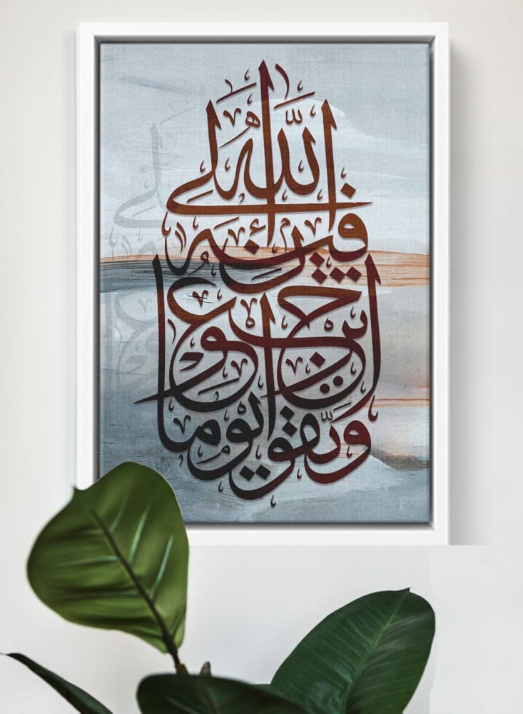 لوحة كانفاس على إطار خشبي بتصميم إسلامي واتقوا يوما ترجعون فيه إلى الله
