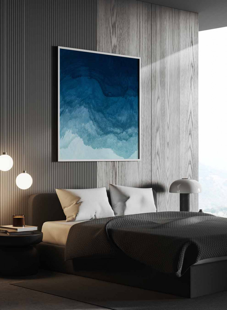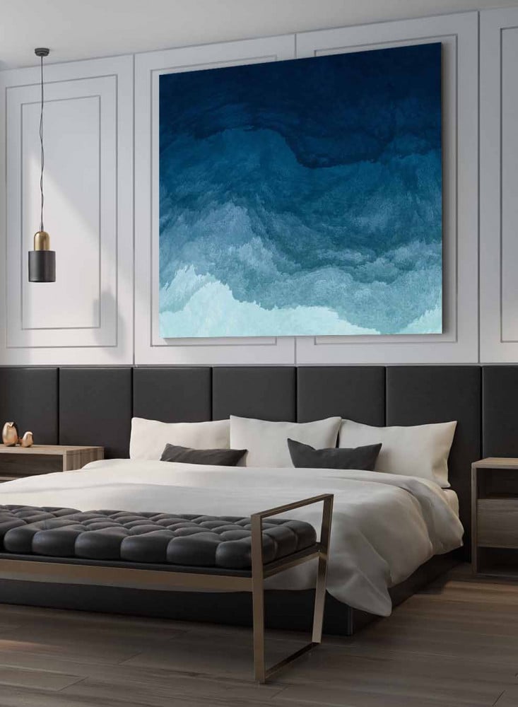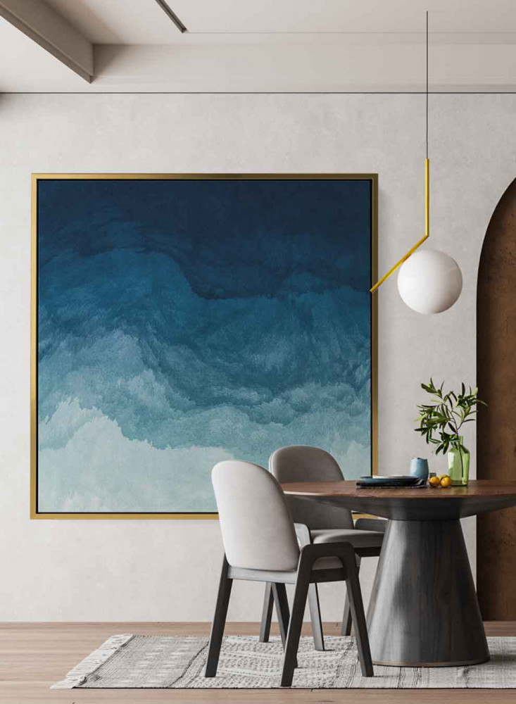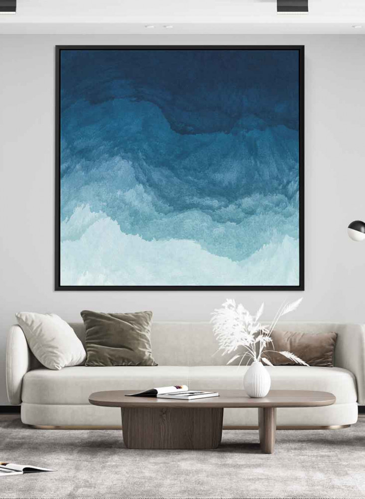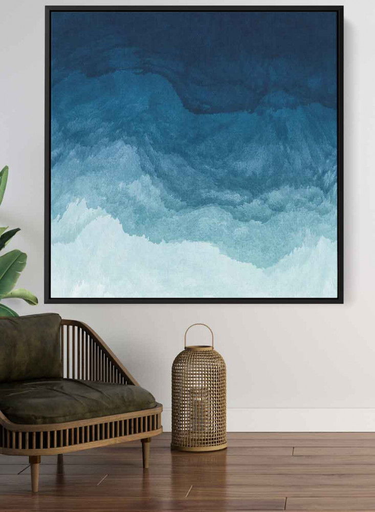 لوحة كانفاس مربع على إطار خشبي، تصميم فن تجريدي لموج البحر، للمنزل، غرفة المعيشة، المكتب، الديكور