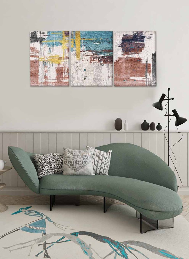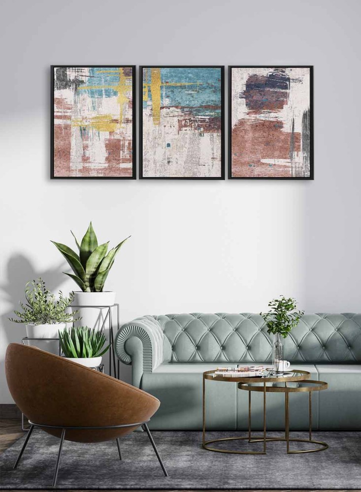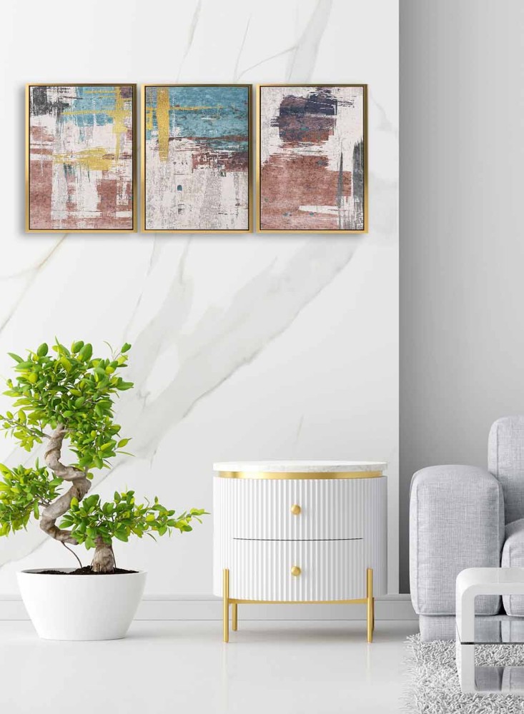 طقم من ٣ لوحات كانفاس على إطار خشبي بتصميم فن تجريدي