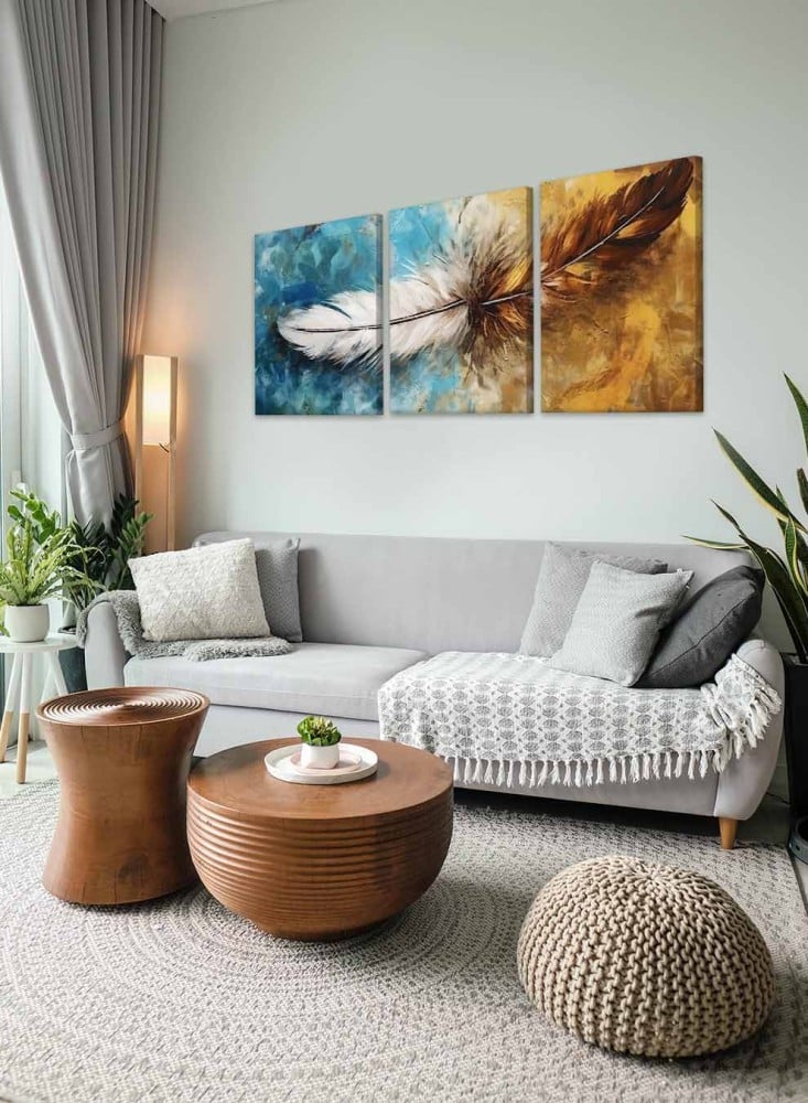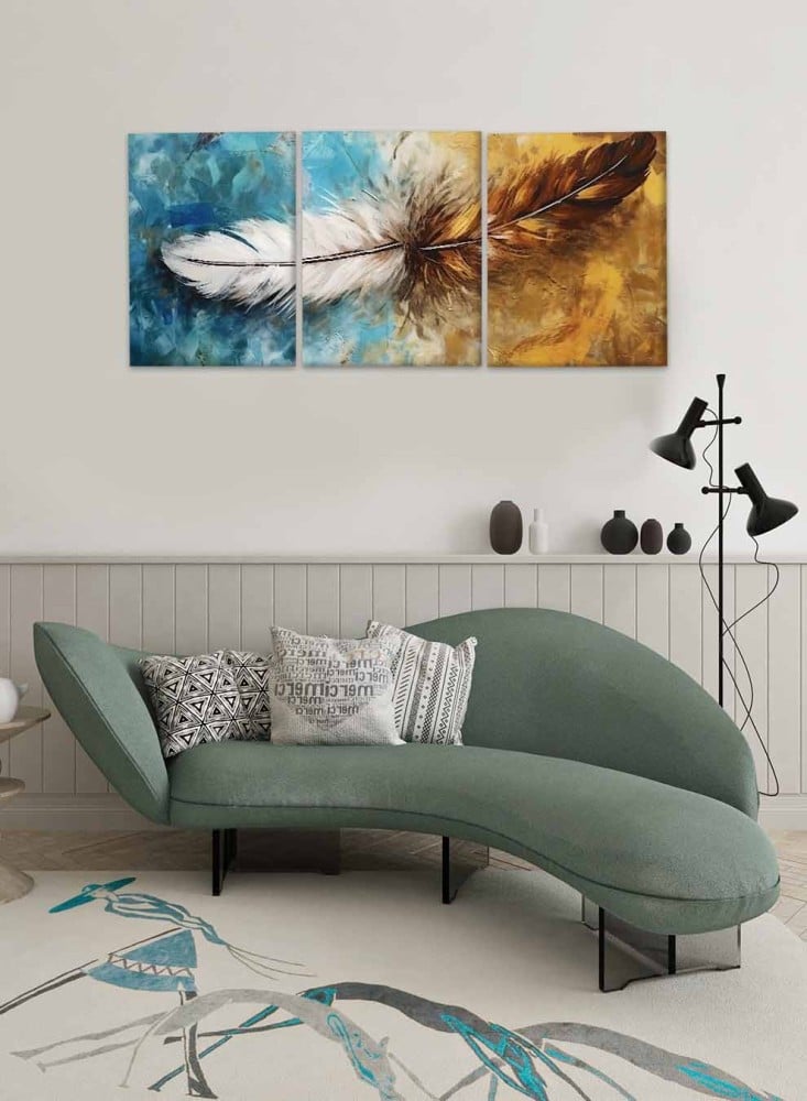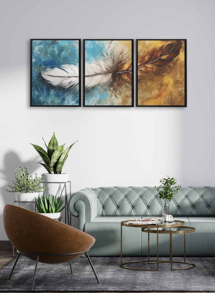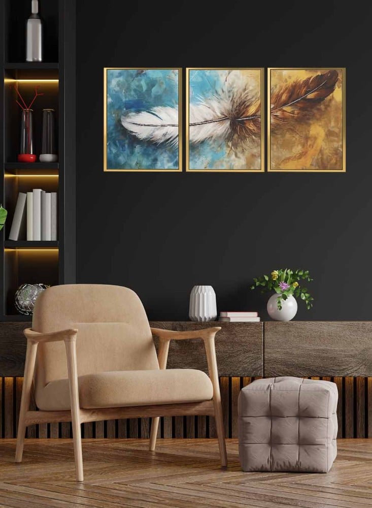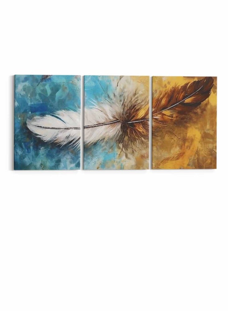 طقم من ٣ لوحات كانفاس على إطار خشبي بتصميم فن تجريدي لريشة ملونة