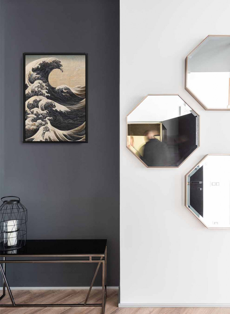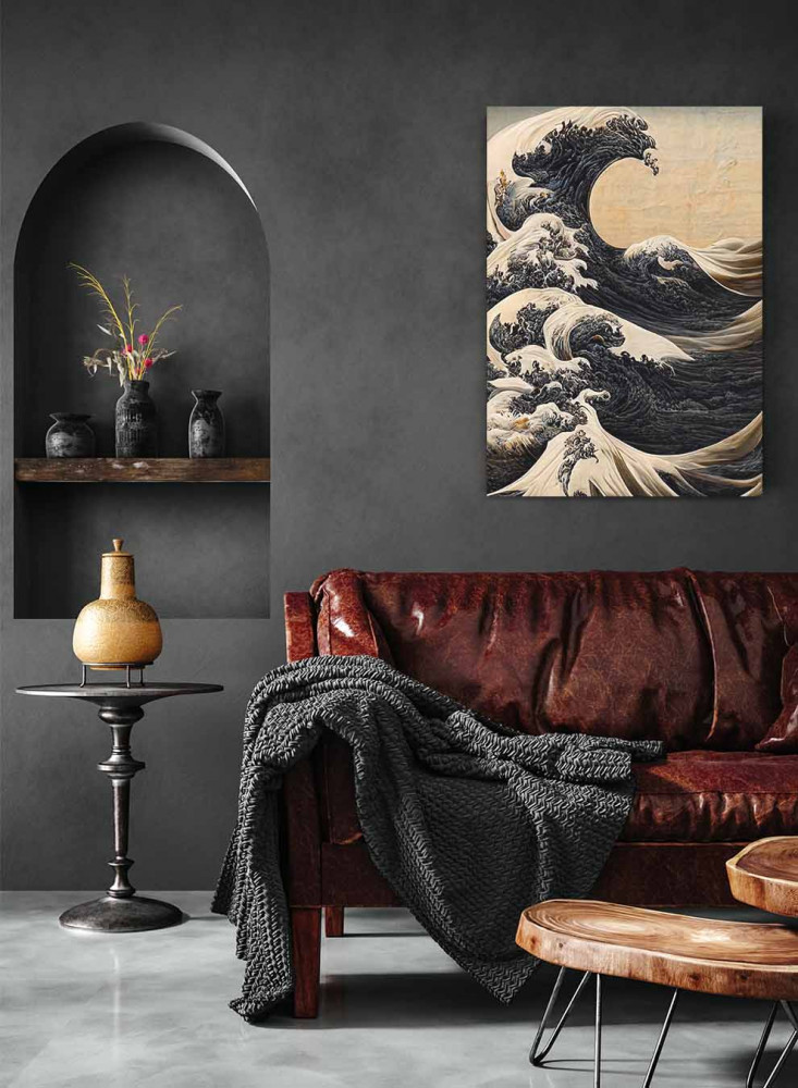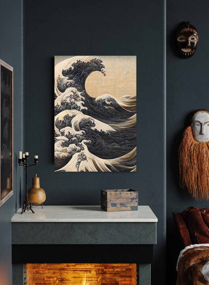 لوحة كانفاس على إطار خشبي، تصميم فن تجريدي لعاصفة بحرية، للمنزل، غرفة المعيشة، المكتب، الديكور