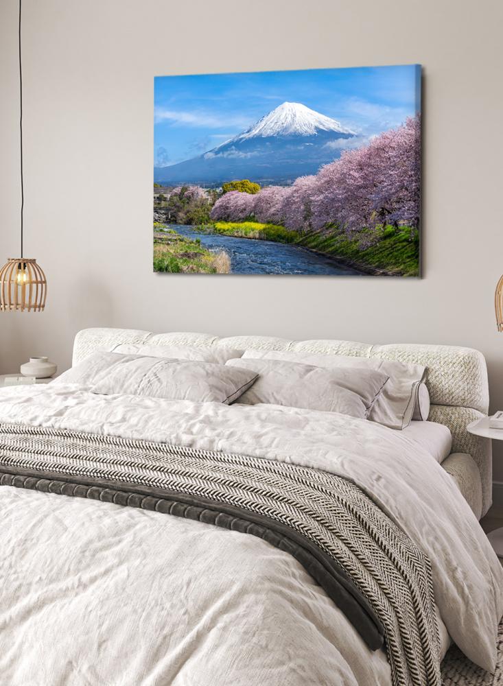 لوحة كانفاس على إطار خشبي لجبل فوجي في اليابان