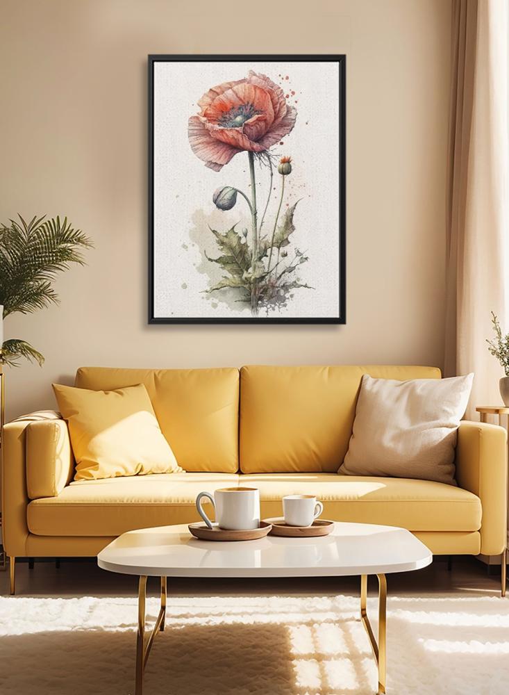 لوحة كانفاس على إطار خشبي بتصميم زهرة الخشخاش