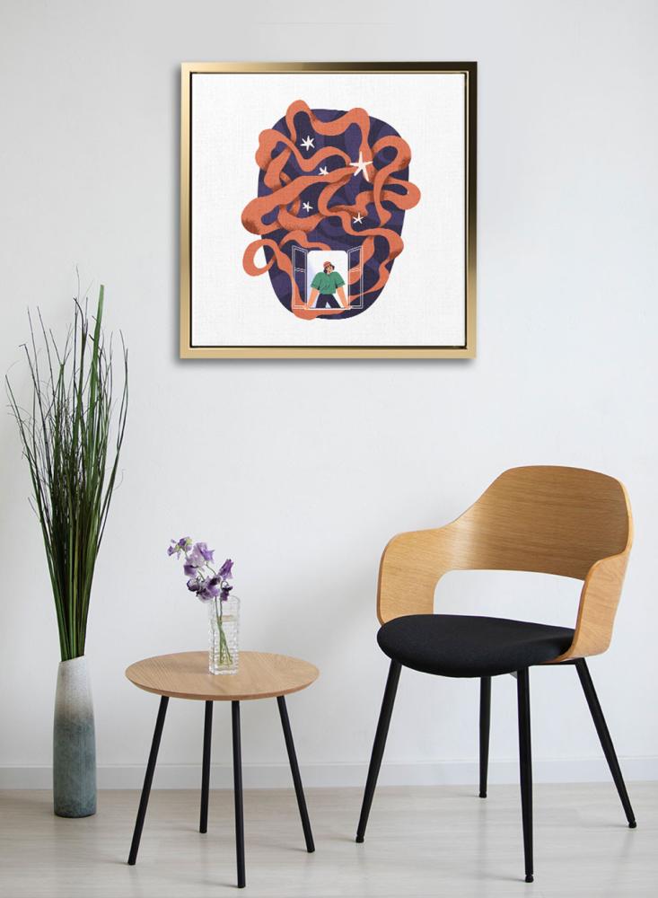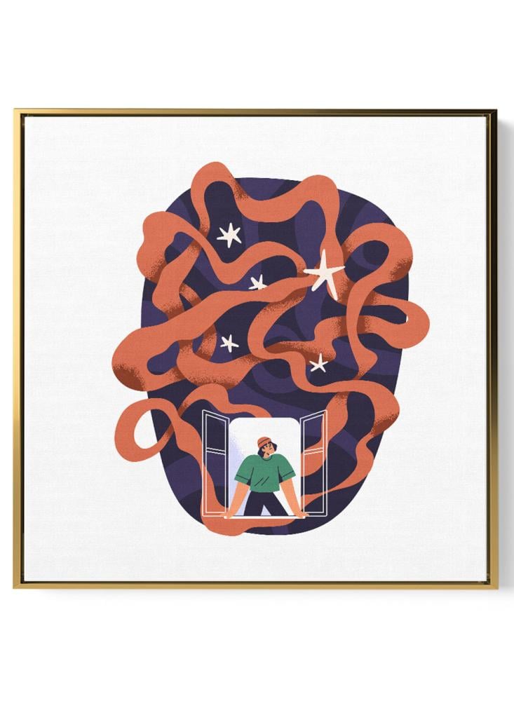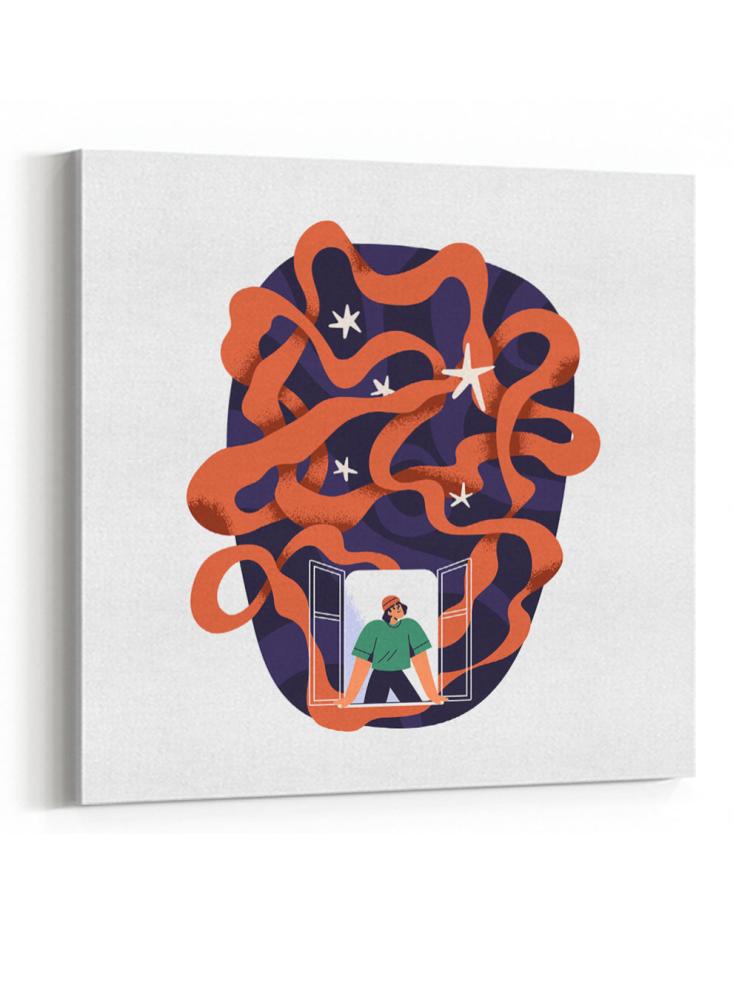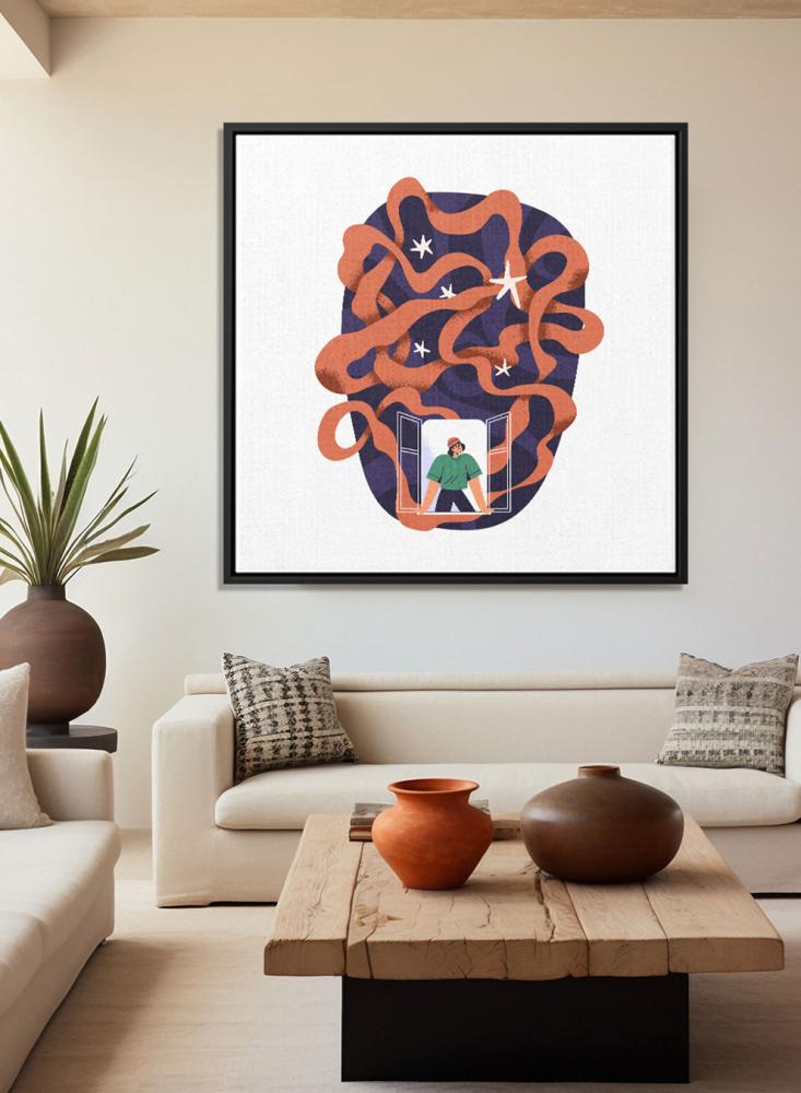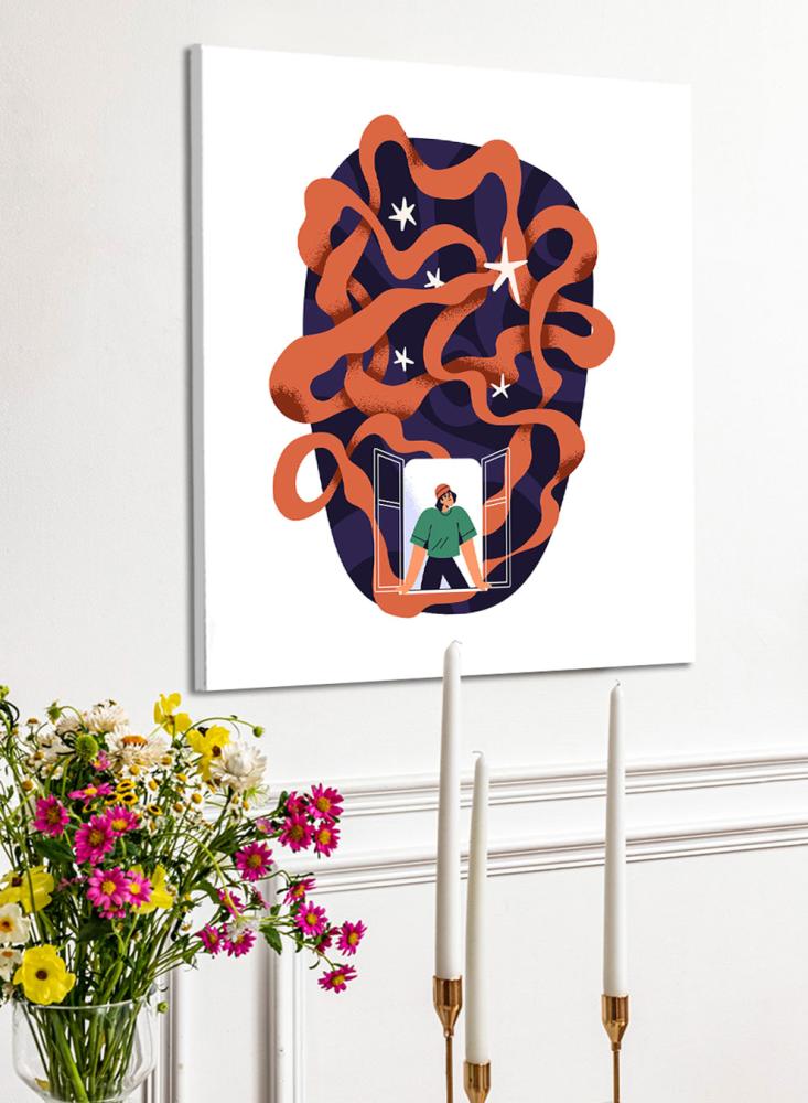 لوحة كانفاس على إطار خشبي بالفن التصوري لتصميم نافذة الأحلام