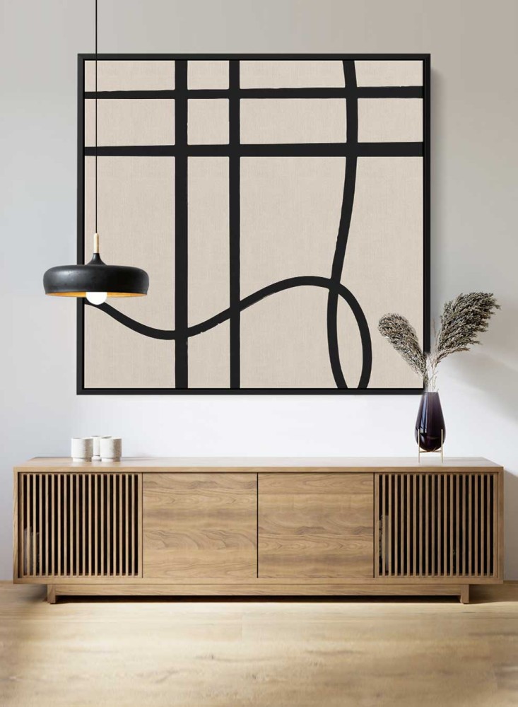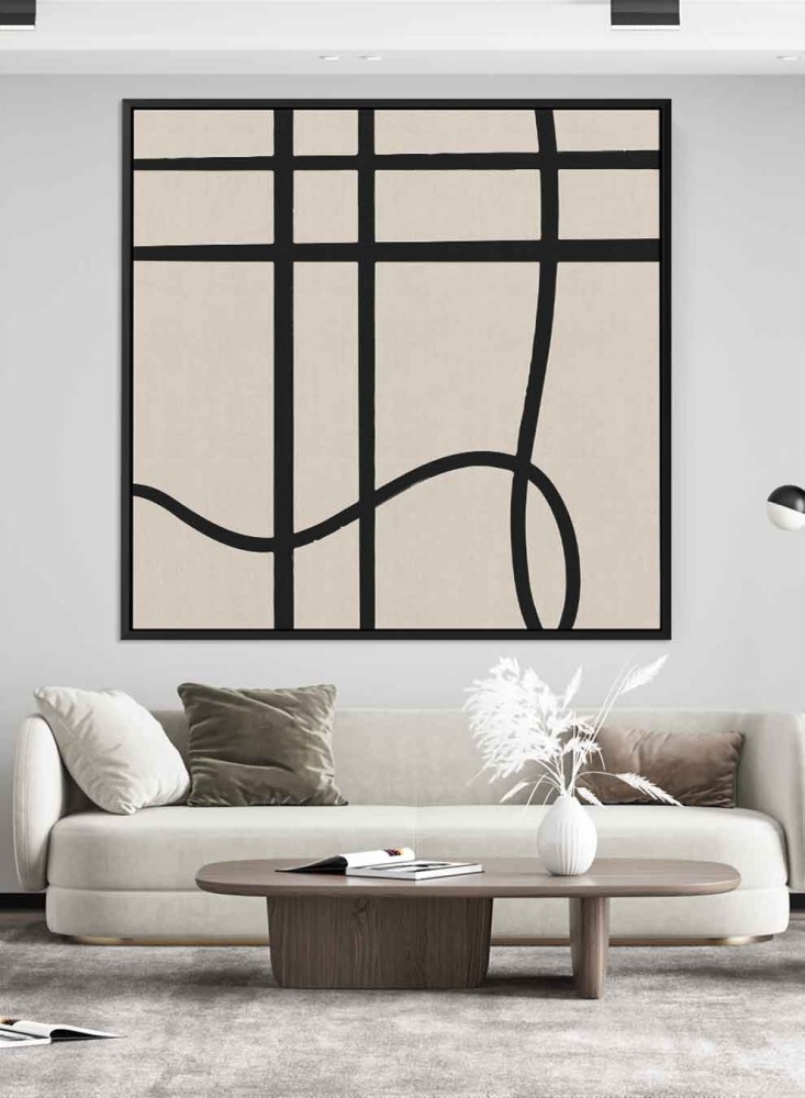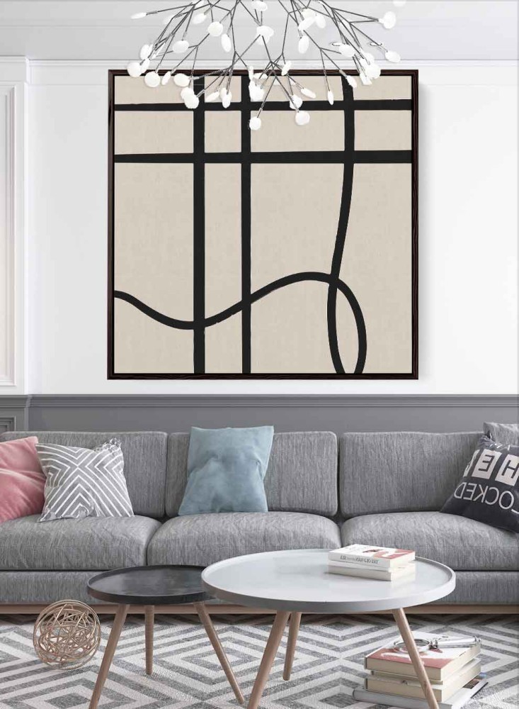 لوحة كانفاس على إطار خشبي بتصميم فن تجريدي سكندنافى