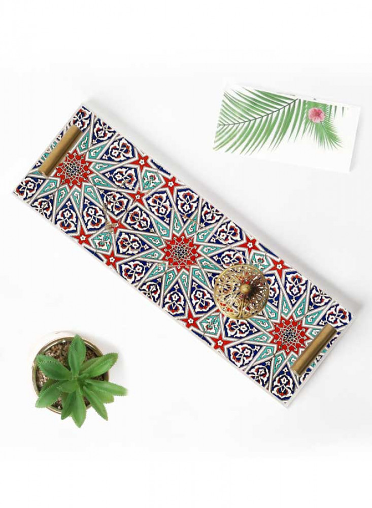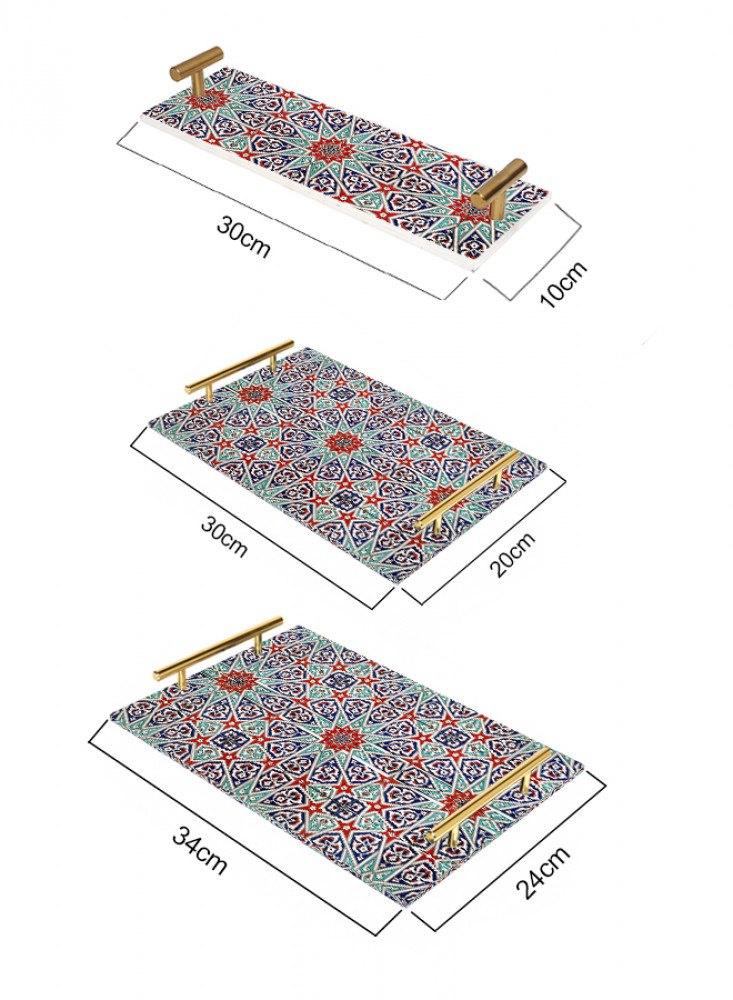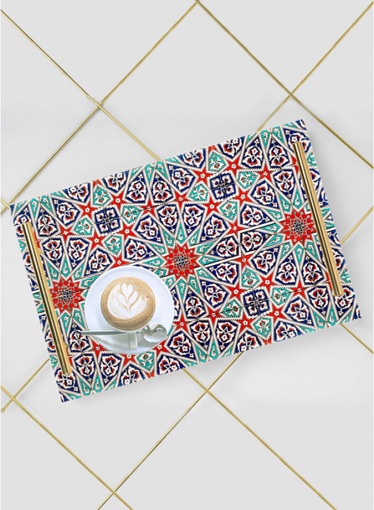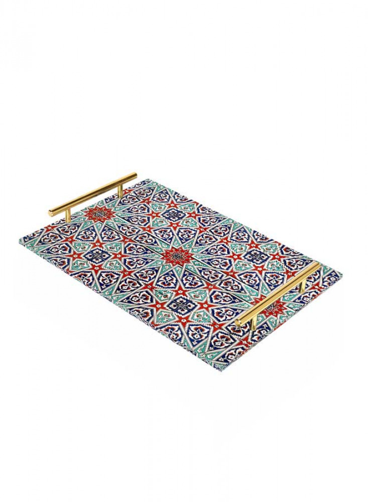 صينية تقديم مصنوعة من الأكريليك بمقابض معدنية ذهبية اللون مزخرفة بتصميم بلاط الفسيفساء