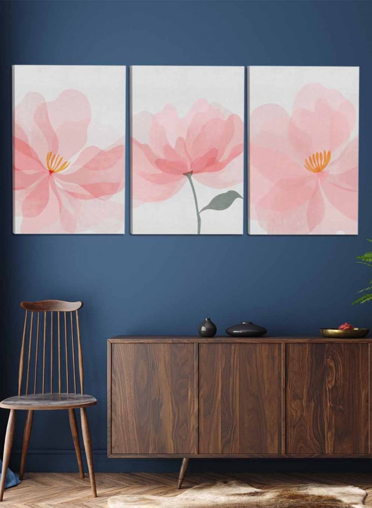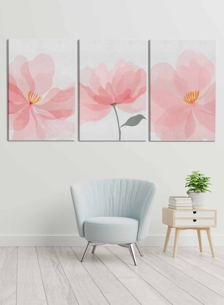 طقم من ٣ لوحات كانفاس على إطار خشبي، تصميم رسم جمالي للزهور، للمنزل، غرفة المعيشة، المكتب، الديكور