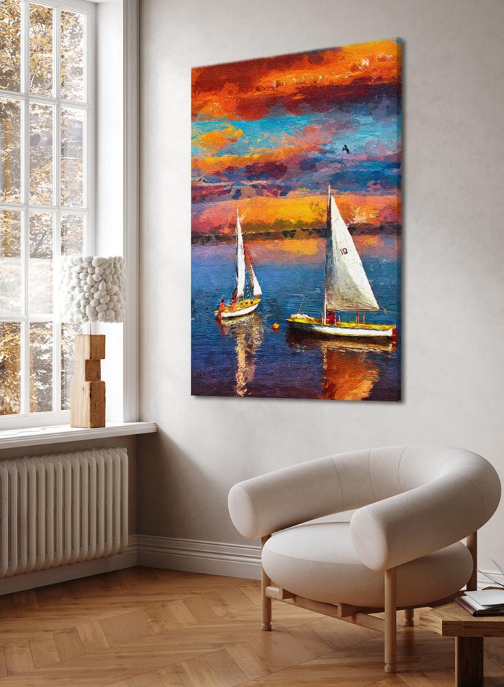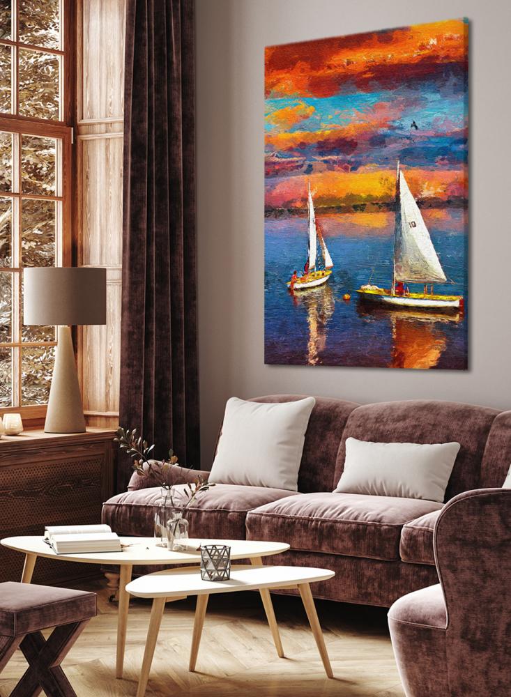 لوحة كانفاس على إطار خشبي بتصميم لوحة زيتية مراكب
