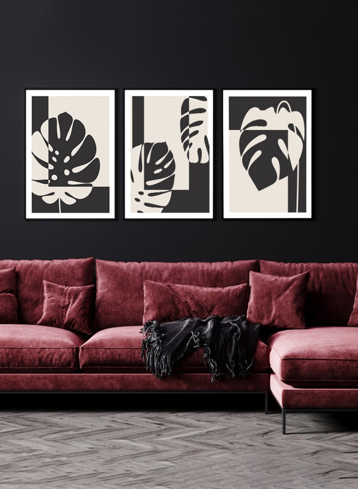 Set of 3 Canvas Paintings on Wooden Frame, Tropical Leaves Design, for Home, Living Room, Office, Decoration