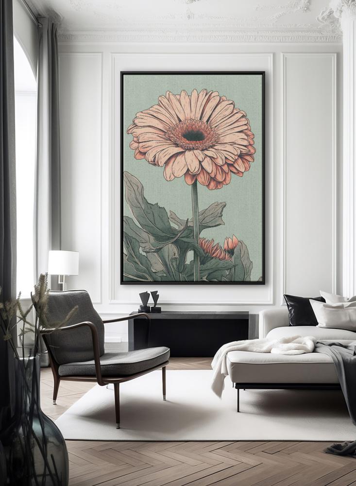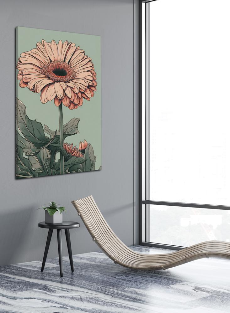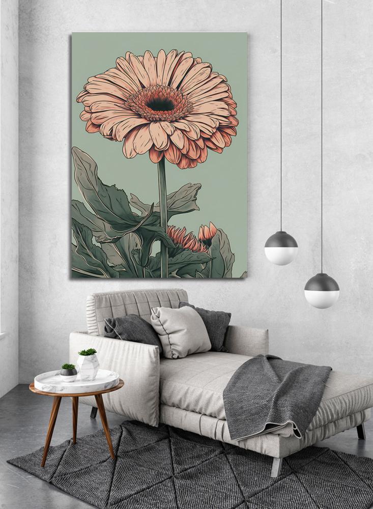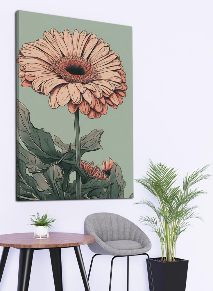 لوحة كانفاس على إطار خشبي بتصميم زهرة الدايزى