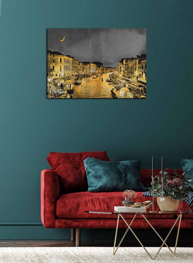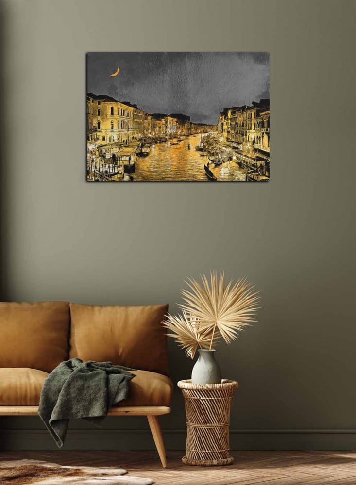 Canvas painting on a wooden frame, Venice night view design, for home, living room, office, decoration
