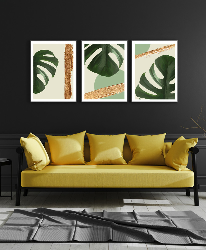 Set of 3 Canvas Paintings on Wooden Frame, Dendrum Leaves Design, for Home, Living Room, Office, Decoration