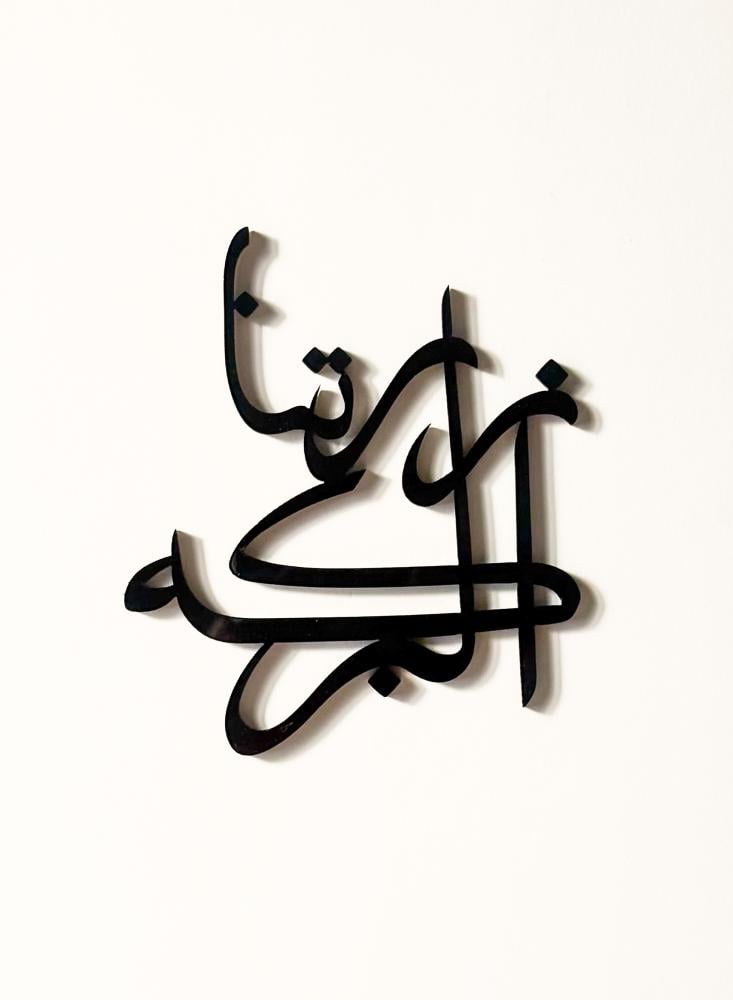 تضفي زينة صحن ديكور المصنوعة من الأكريليك من متجر لوحة طابعًا معاصرًا على مائدة الطعام، سواء في المناسبات الخاصة أو خلال التجمعات اليومية. تتكون المجموعة من ٤ قطع تحمل عبارة "زارتنا البركة"، وتبرز بتصميم أنيق يدمج البساطة مع الحداثة. يعزز استخدام الأكريليك الأسود من ثبات القطع ومقاومتها للاستخدام المتكرر، مع ضمان احتفاظها بجمال التفاصيل الناتجة عن دقة القطع بالليزر. تعد خيارًا عمليًا لتجديد ديكور الأطباق بطريقة سلسة وأنيقة.