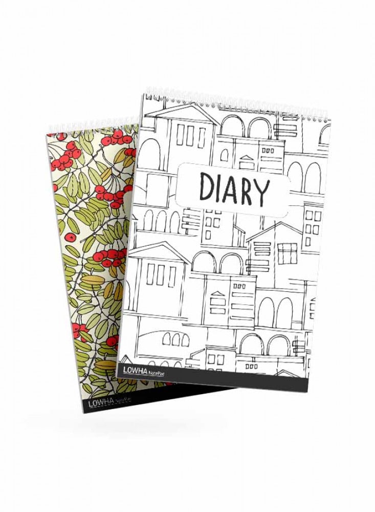 Set of 2 Spiral Bound Notebooks 50 Sheets Each with Paper Cover Hand Drawn Design Leaves and Houses for Recording Notes and Taking Reminders for Work, College or School