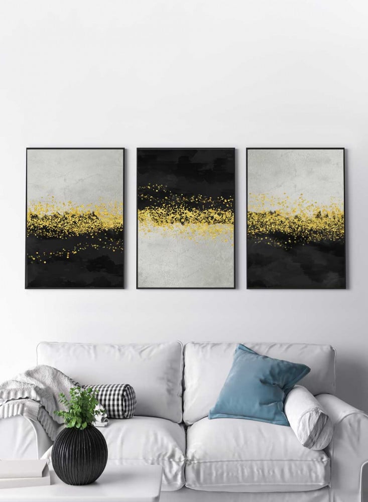 طقم من ٣ لوحات كانفاس على إطار خشبي، تصميم خلفية تجريدية، للمنزل، غرفة المعيشة، المكتب، الديكور