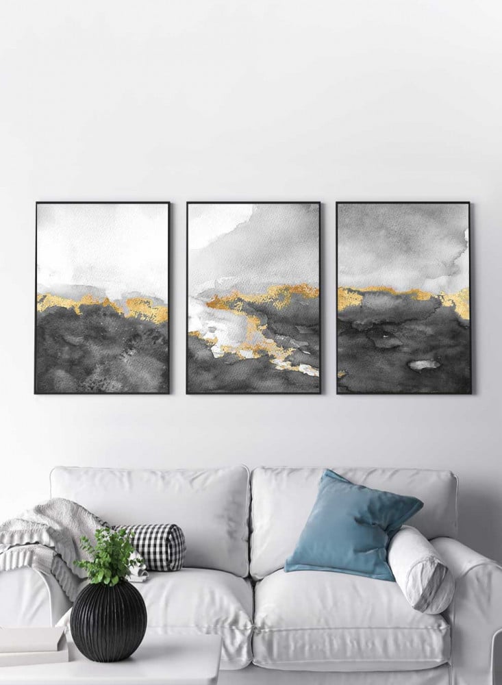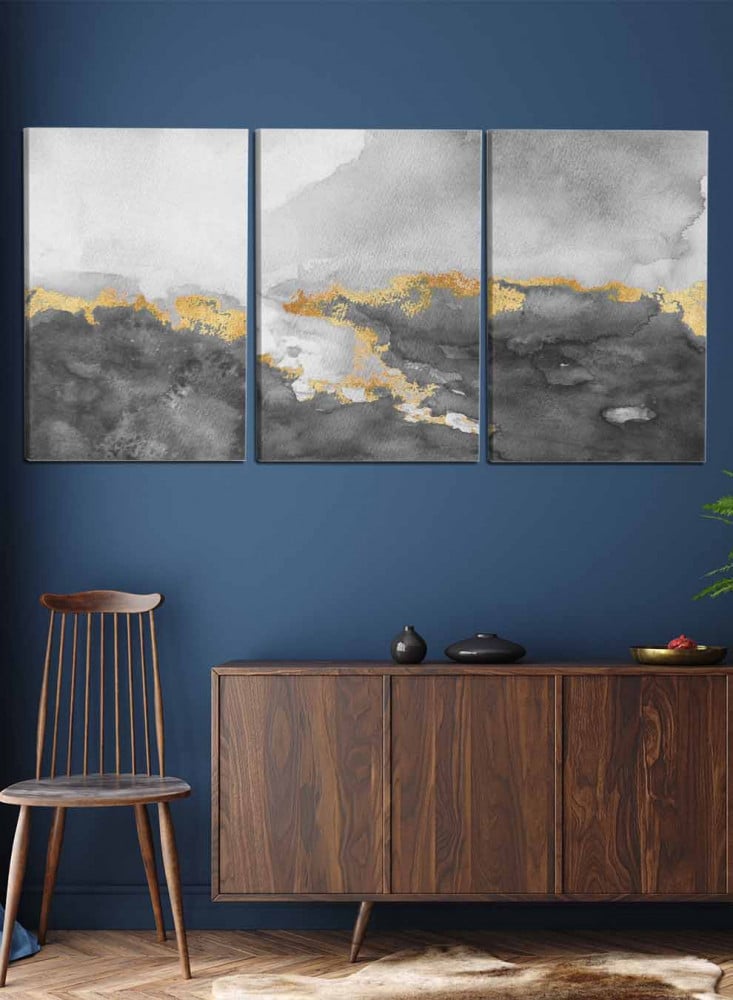 طقم من ٣ لوحات كانفاس على إطار خشبي، تصميم فن زيتي تجريدي، للمنزل، غرفة المعيشة، المكتب، الديكور